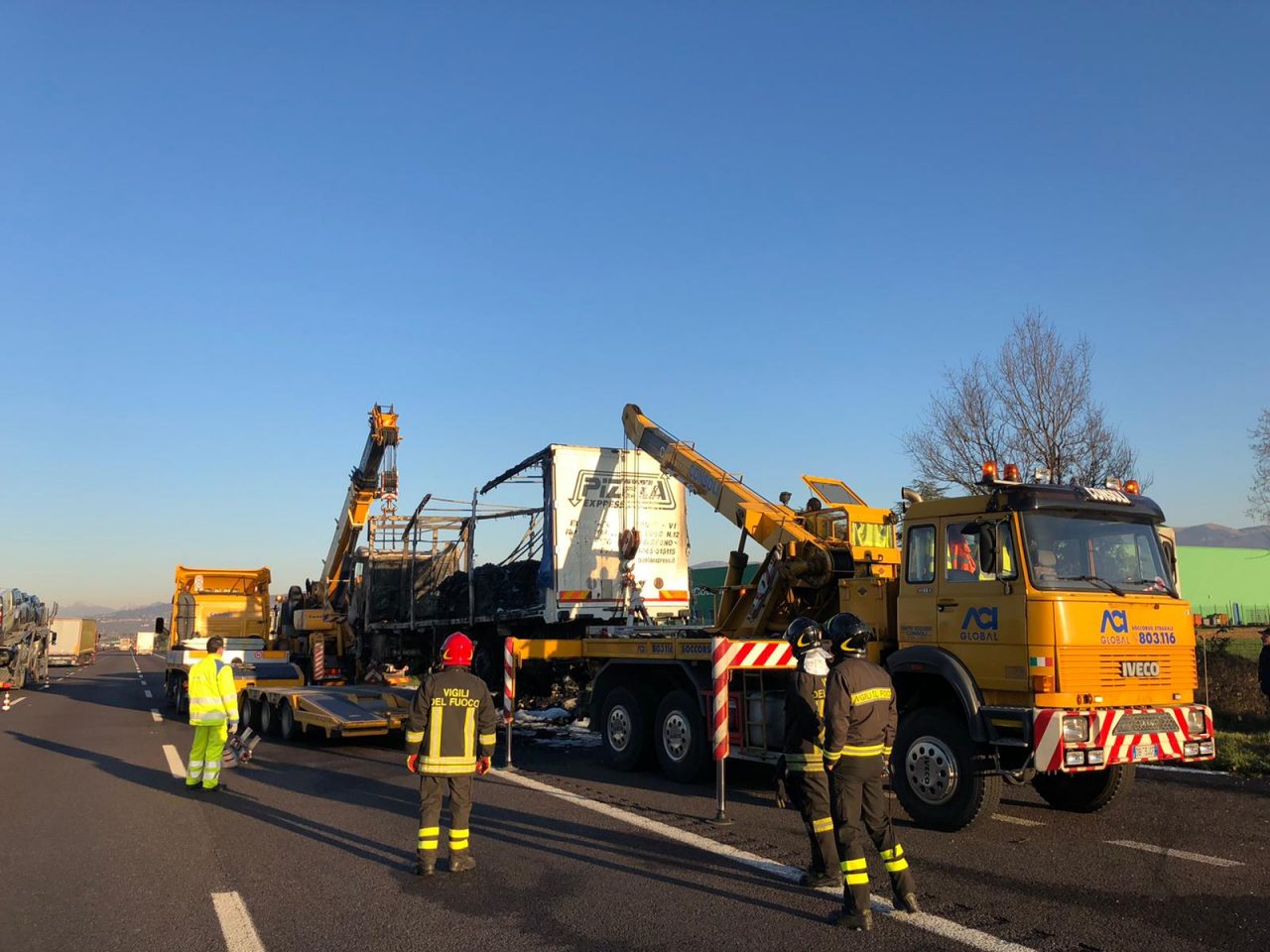 L’incidente è accaduto attorno alle 5.30 e l’autostrada è stata riaperta da poco. L”intervento è tutt’ora in atto.