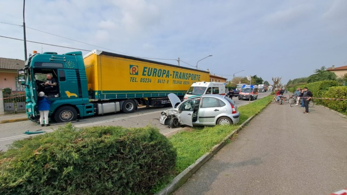 Dalle prime ricostruzioni pare trattarsi di un frontale tra un’autovettura e un mezzo pesante. Alla guida di quest’ultimo un autista lituano che stava andando verso il centro di Coccaglio. Giunto in prossimità dell’imbocco con via Palazzolo si è trovato davanti l’auto guidata da due anziane, si è accorto che l’auto gli stava venendo addosso: ha tentato di sterzare (il camion si trova leggermente spostato sulla destra) per evitare l’auto ma senza successo, lo ha colpito lateralmente. Il mezzo pesante ha subito alcuni danni, l’auto completamente distrutta. Due anziane sono rimaste incastrate all’interno dell’autovettura, sono sempre rimaste coscienti. In un primo momento sono state soccorse da alcuni presenti che hanno assistito alla scena. Illeso l’autista del camion.  Ad intervenire sul posto l’ambulanza di Croce Rossa di Palazzolo, l’automedica da Chiari, i Carabinieri di Erbusco, la Radiomobile che si sta occupando del traffico e i vigili del fuoco volontari di Chiari.