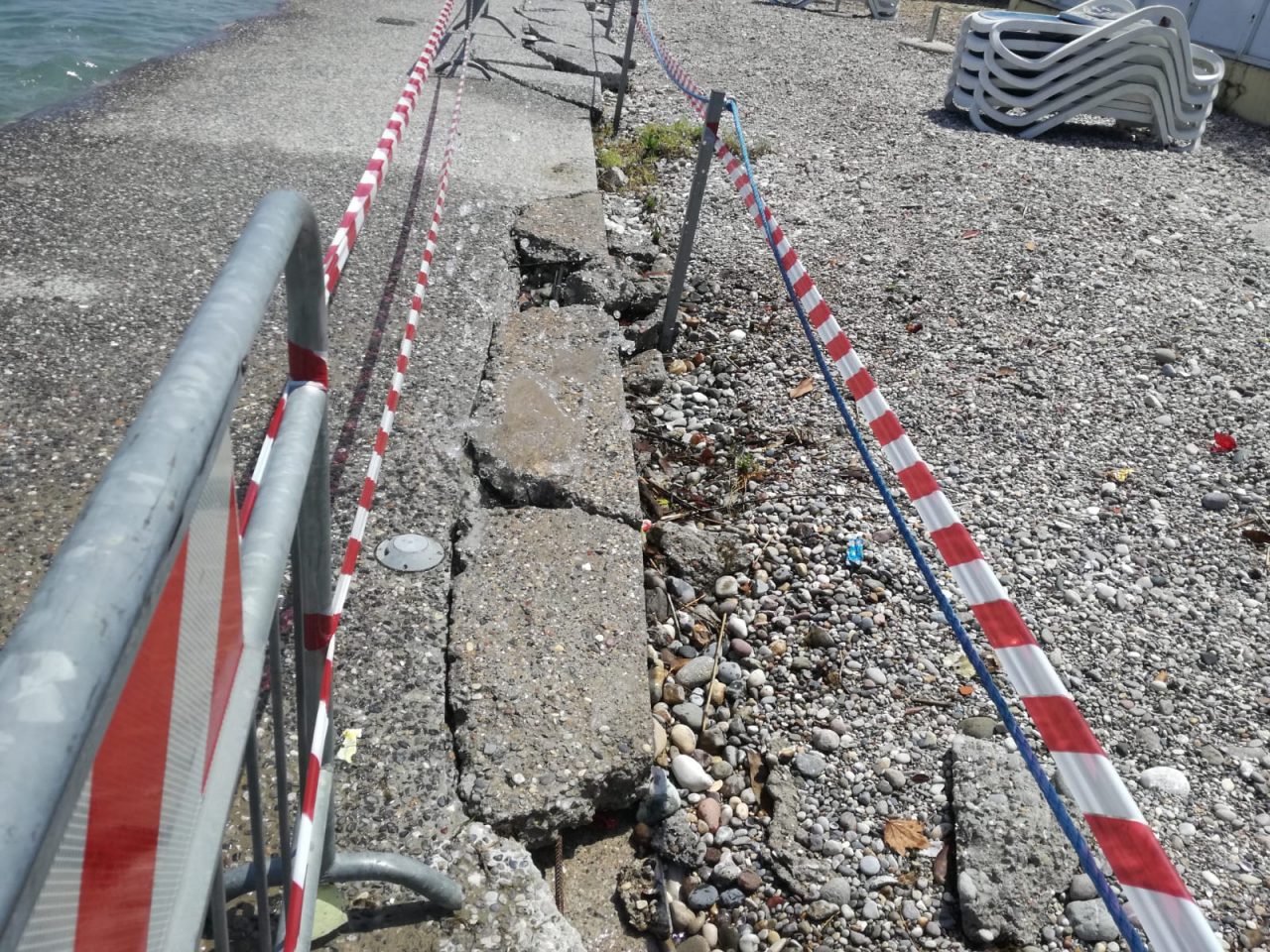 La passeggiata si è staccata verso l’esterno spaccando i massi, all’altezza dell’hotel Lido International.