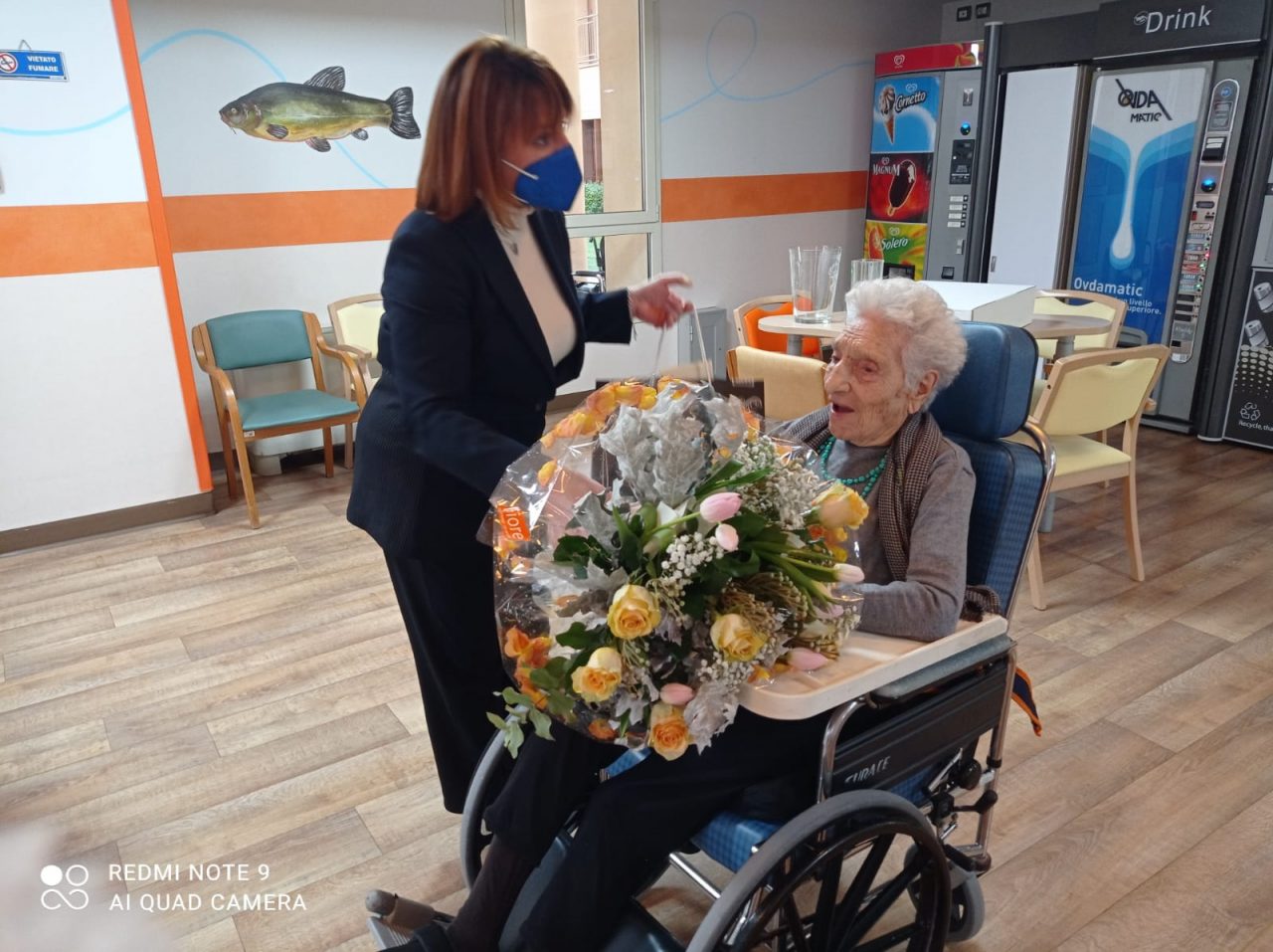 Presente, in rappresentanza del sindaco e dell’Amministrazione comunale, l’assessore ai Servizi sociali Mariangela Premoli, che ha donato alla centenaria un grande mazzo di fiori.