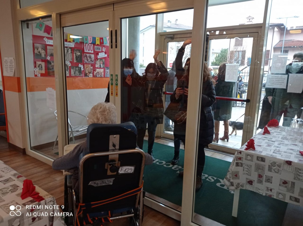 Non c’era pandemia che potesse fermare i festeggiamenti per i cento anni di Iole Brescianini, ospite della Casa di riposo di Iseo. Oggi pomeriggio, mercoledì, i nipoti e parenti la hanno raggiunta per un saluto dalla vetrata dell’ingresso della struttura. La decana è rimasta all’interno con lo staff della Rsa e alcune delle amiche ospiti, mentre dall’esterno i famigliari hanno cantato con lei per celebrare questo importante traguardo.