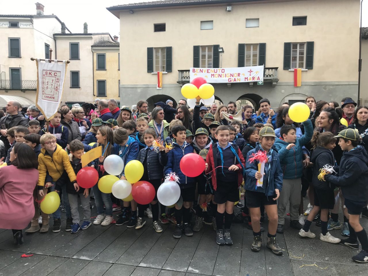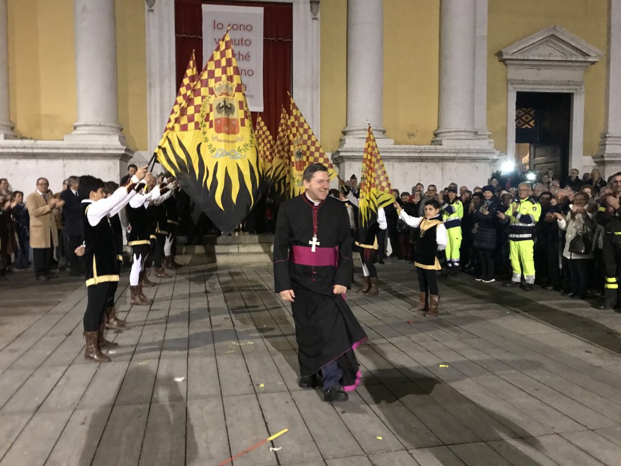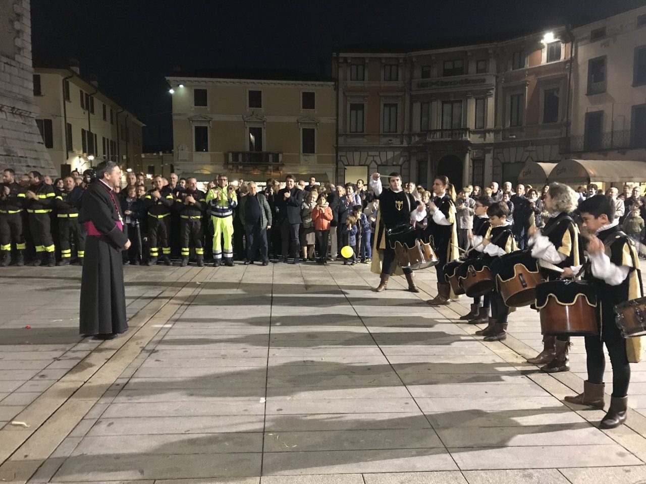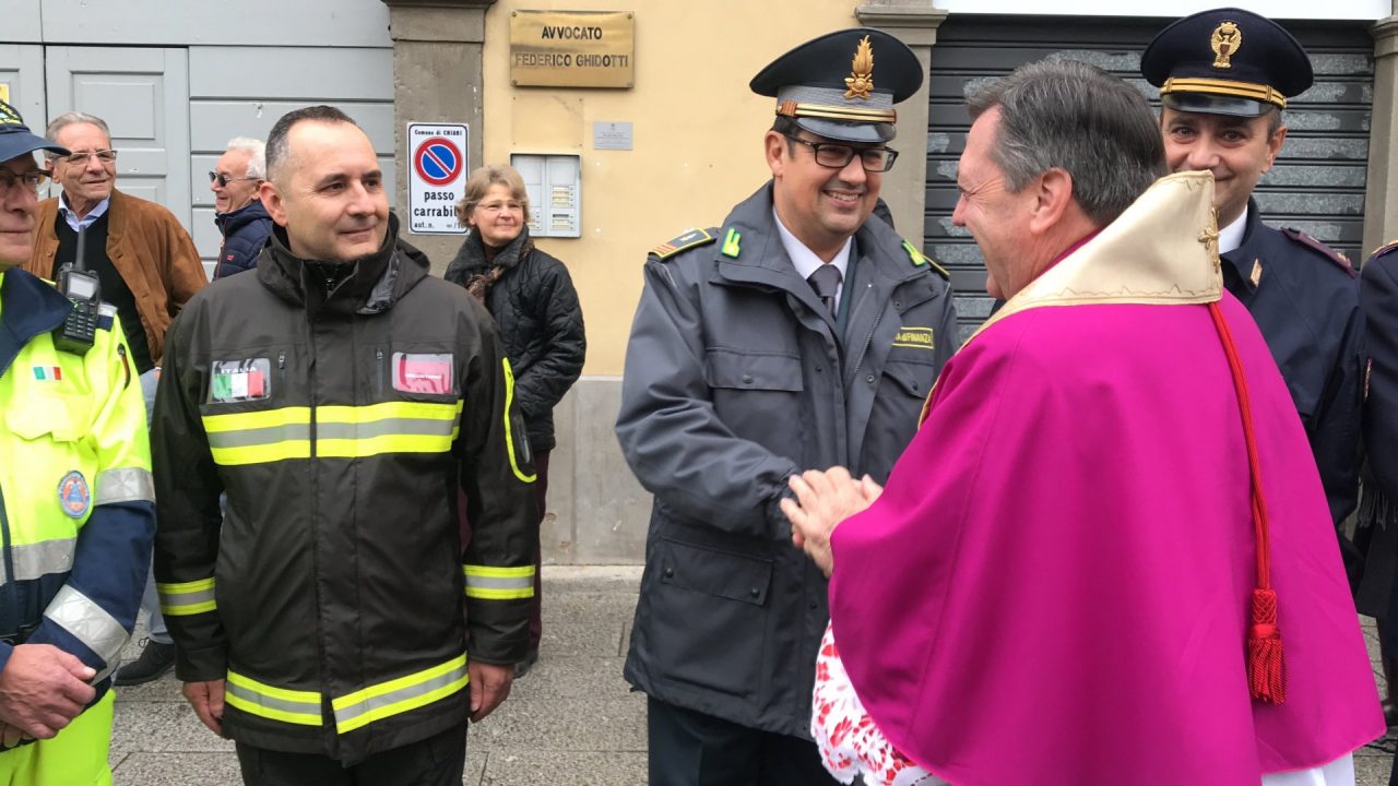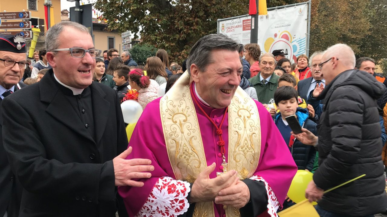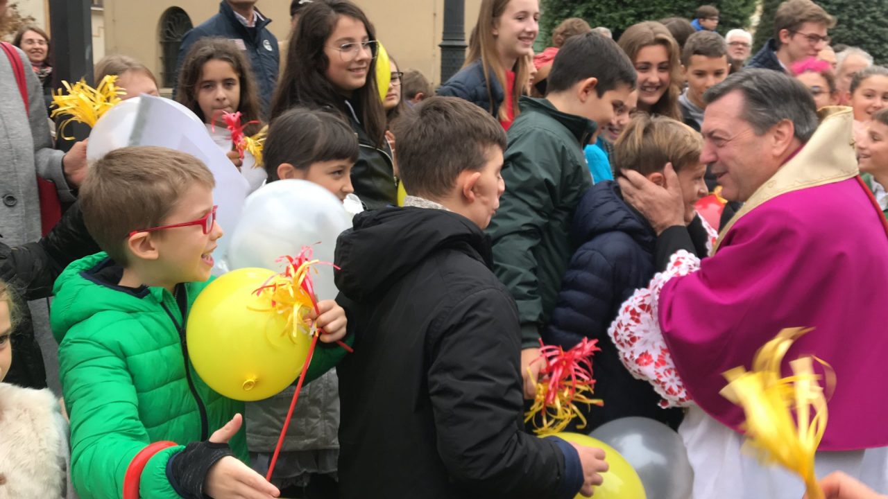 Con corteo d’onore in auto, passando per viale Mazzini meravigliosamente addobbato per l’occasione, monsignor Gian Maria ha raggiunto piazza Martiri. Arrivato davanti alla ex Rocca, il parroco è stato accolto da centinaia di bambini dell’oratorio Centro Giovanile 2000 e di San Bernardino. Poco più avanti ha invece incontrato il vicesindaco Maurizio Libretti, i consiglieri di minoranza Roberto Campodonico e Fabiano Navoni, i rappresentati della Guardia di Finanza e della Polizia di Stato, dei carabinieri, ovvero il maggiore Carlo Pessini e comandante Davide D’Aquila, quello della Polizia Locale Michele Garofalo, i presidenti delle quattro Quadre e tutti i rappresentati delle associazioni, davanti Vigili del fuoco e Protezione civile (che con gli Alpini si è assicurata che tutti i momenti della manifestazione andassero al meglio).
