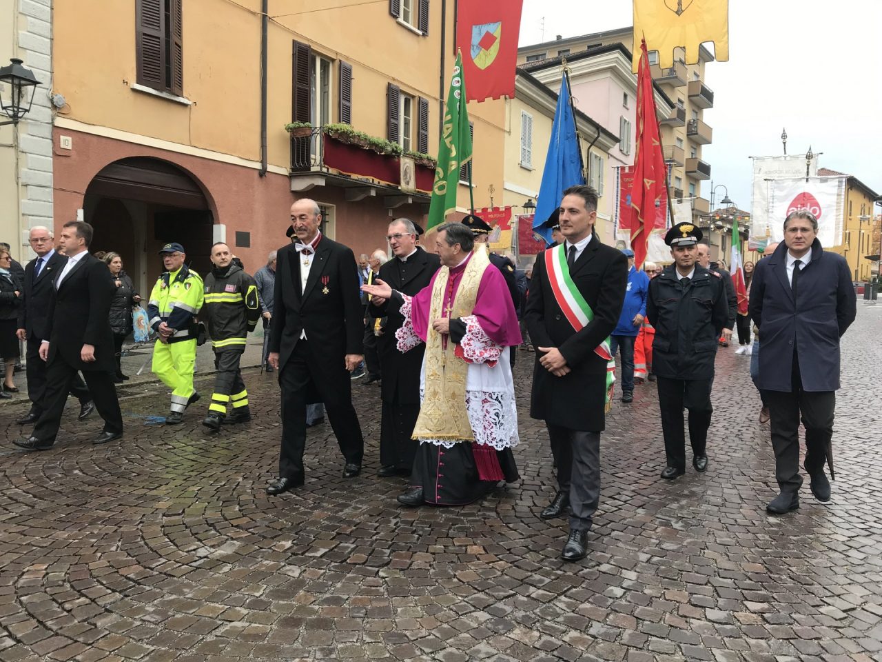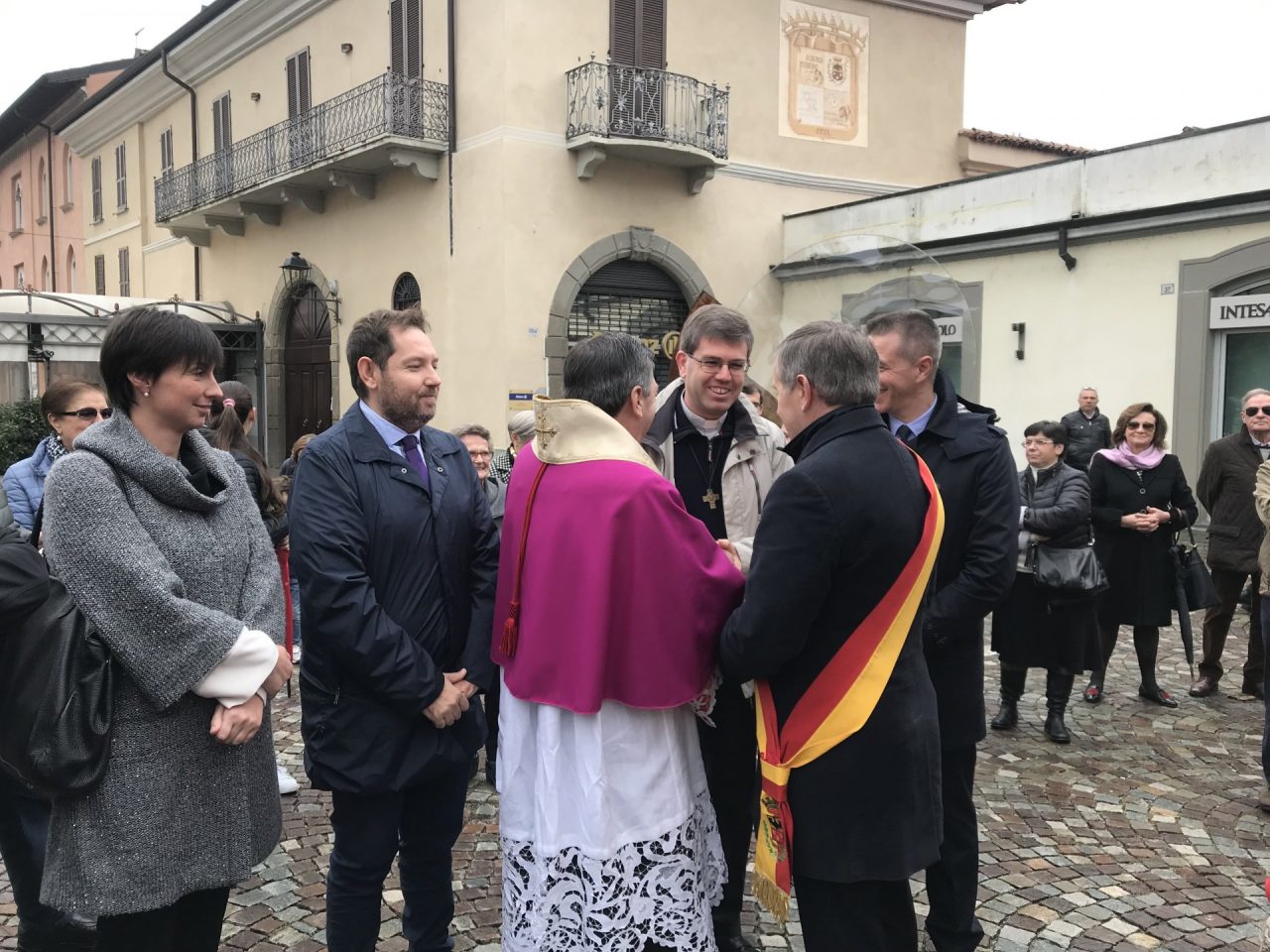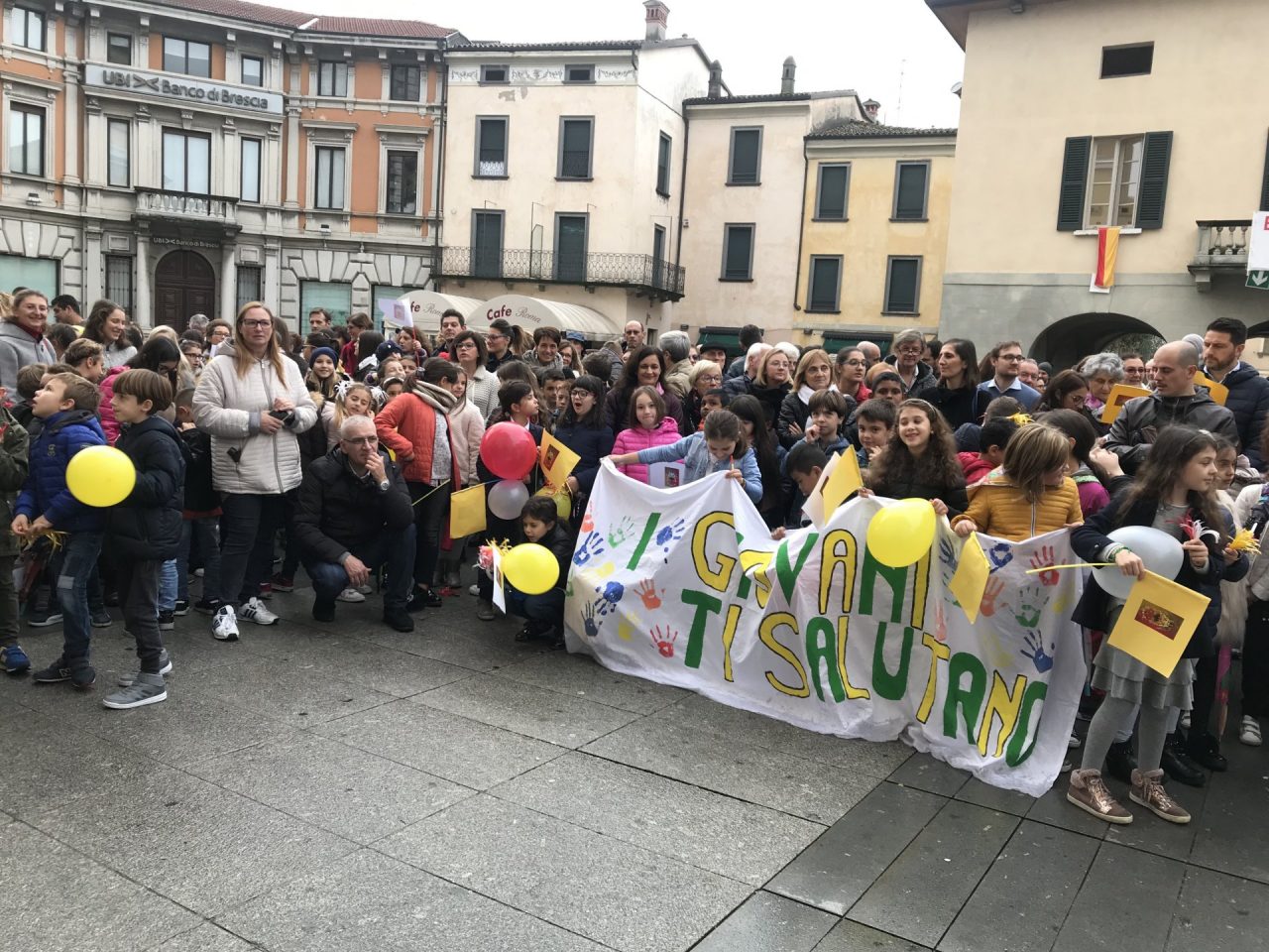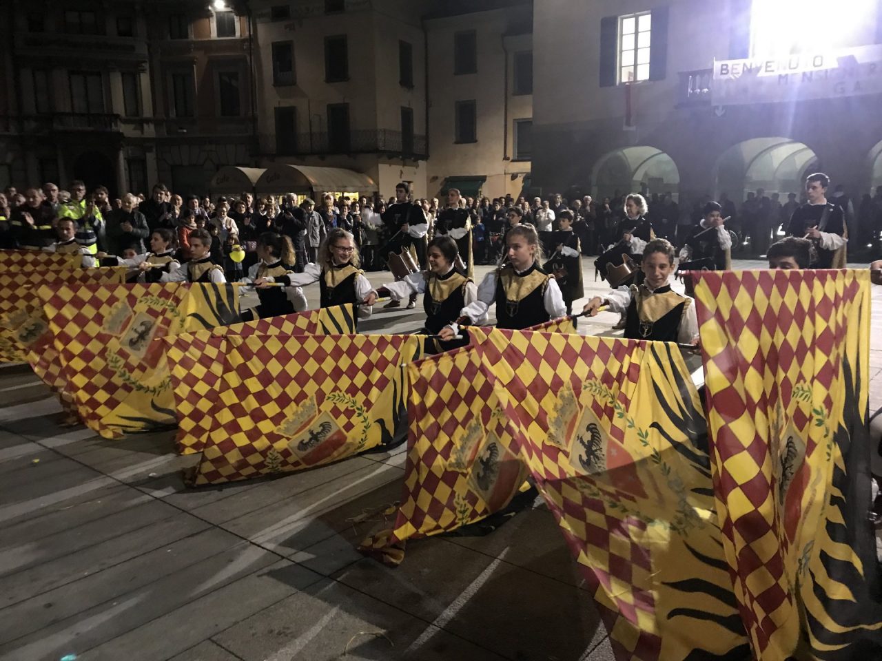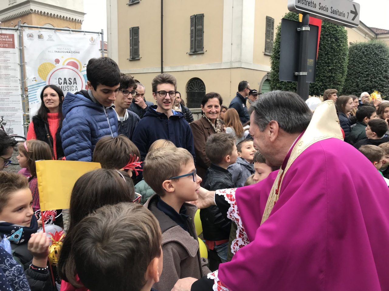 Con corteo d’onore in auto, passando per viale Mazzini meravigliosamente addobbato per l’occasione, monsignor Gian Maria ha raggiunto piazza Martiri. Arrivato davanti alla ex Rocca, il parroco è stato accolto da centinaia di bambini dell’oratorio Centro Giovanile 2000 e di San Bernardino. Poco più avanti ha invece incontrato il vicesindaco Maurizio Libretti, i consiglieri di minoranza Roberto Campodonico e Fabiano Navoni, i rappresentati della Guardia di Finanza e della Polizia di Stato, dei carabinieri, ovvero il maggiore Carlo Pessini e comandante Davide D’Aquila, quello della Polizia Locale Michele Garofalo, i presidenti delle quattro Quadre e tutti i rappresentati delle associazioni, davanti Vigili del fuoco e Protezione civile (che con gli Alpini si è assicurata che tutti i momenti della manifestazione andassero al meglio).