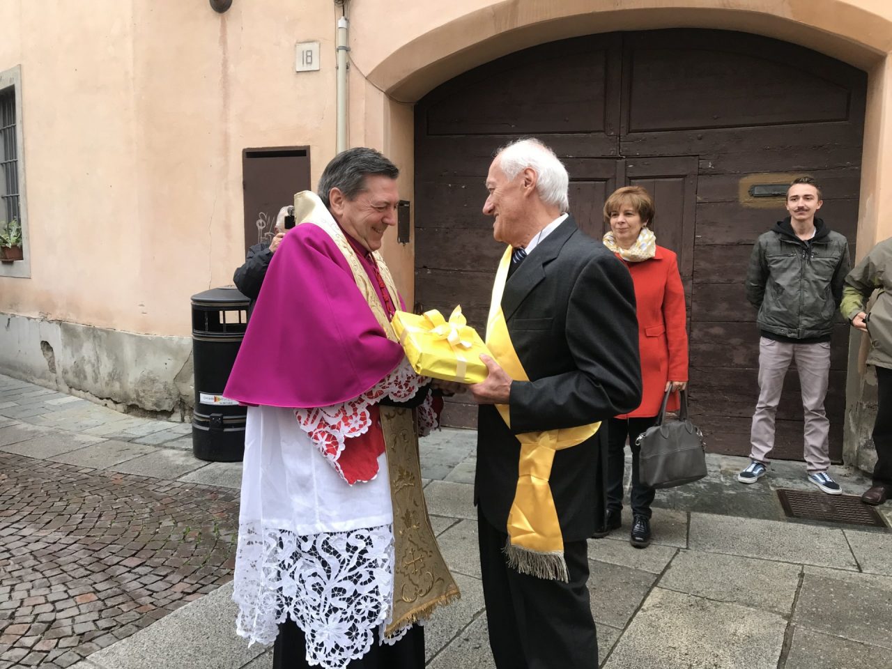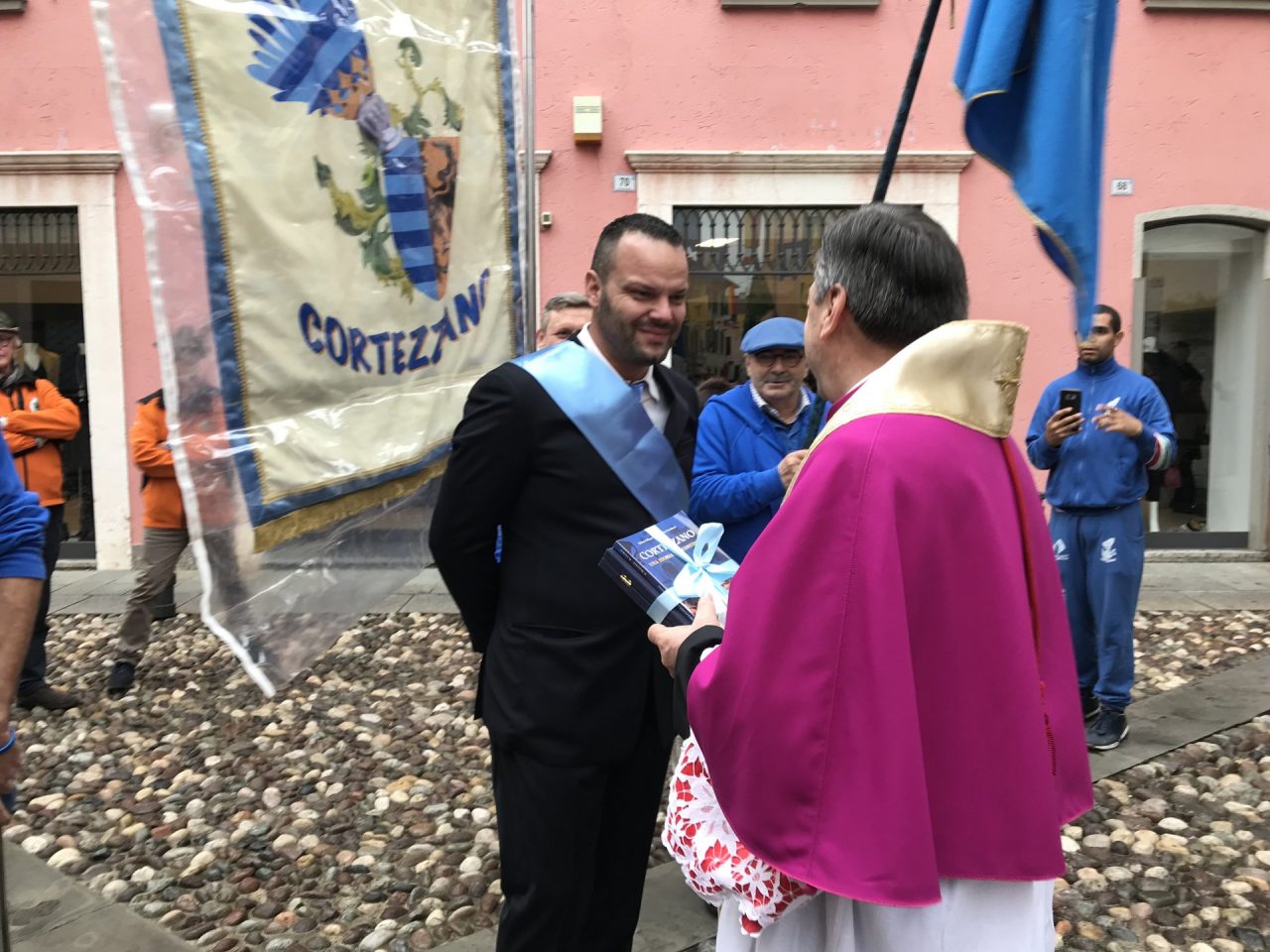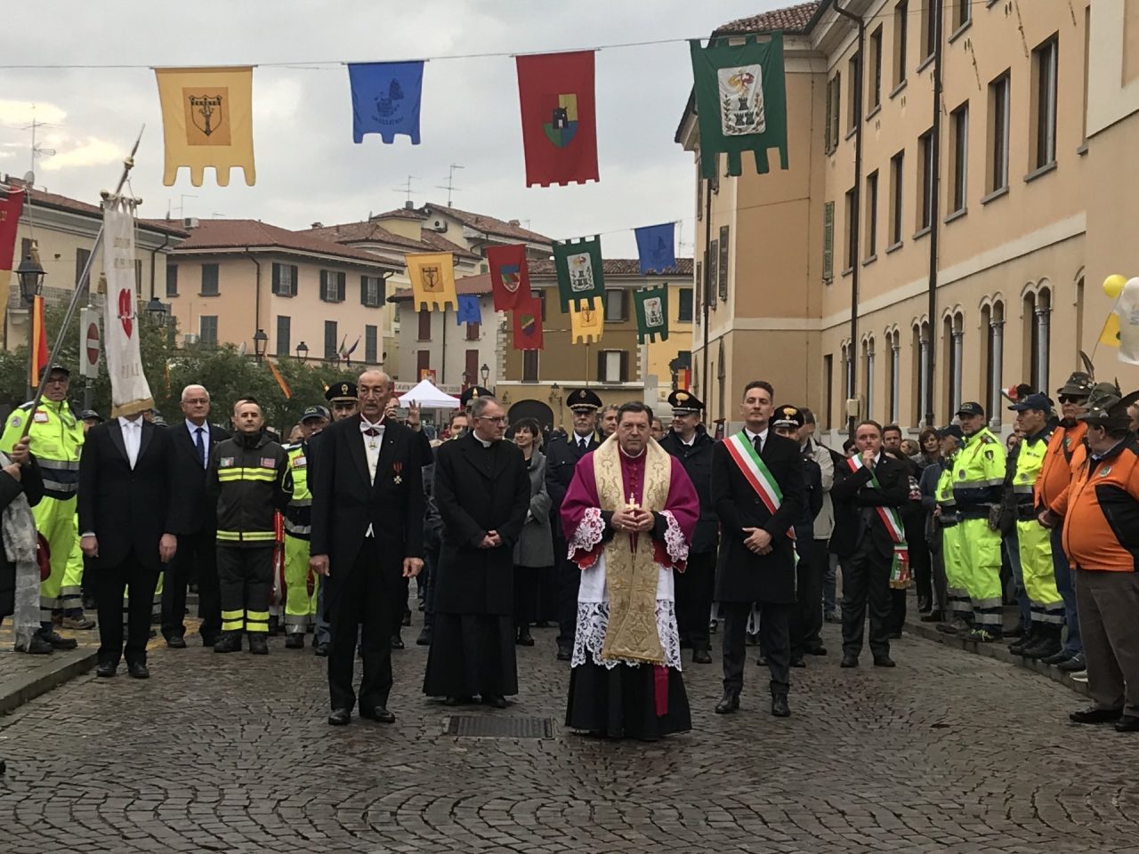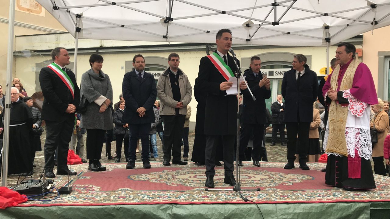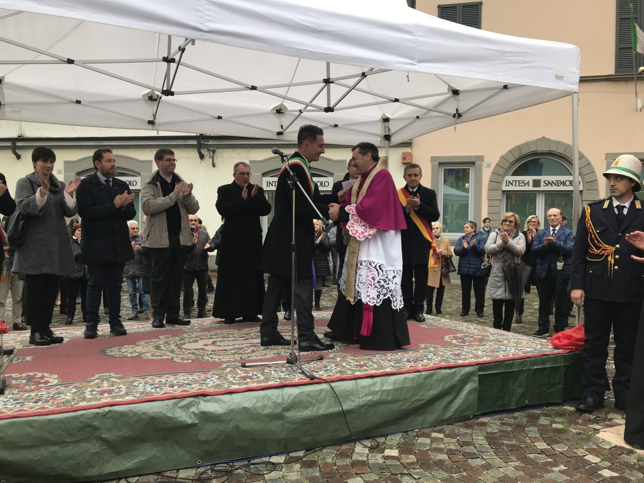 Con corteo d’onore in auto, passando per viale Mazzini meravigliosamente addobbato per l’occasione, monsignor Gian Maria ha raggiunto piazza Martiri. Arrivato davanti alla ex Rocca, il parroco è stato accolto da centinaia di bambini dell’oratorio Centro Giovanile 2000 e di San Bernardino. Poco più avanti ha invece incontrato il vicesindaco Maurizio Libretti, i consiglieri di minoranza Roberto Campodonico e Fabiano Navoni, i rappresentati della Guardia di Finanza e della Polizia di Stato, dei carabinieri, ovvero il maggiore Carlo Pessini e comandante Davide D’Aquila, quello della Polizia Locale Michele Garofalo, i presidenti delle quattro Quadre e tutti i rappresentati delle associazioni, davanti Vigili del fuoco e Protezione civile (che con gli Alpini si è assicurata che tutti i momenti della manifestazione andassero al meglio).