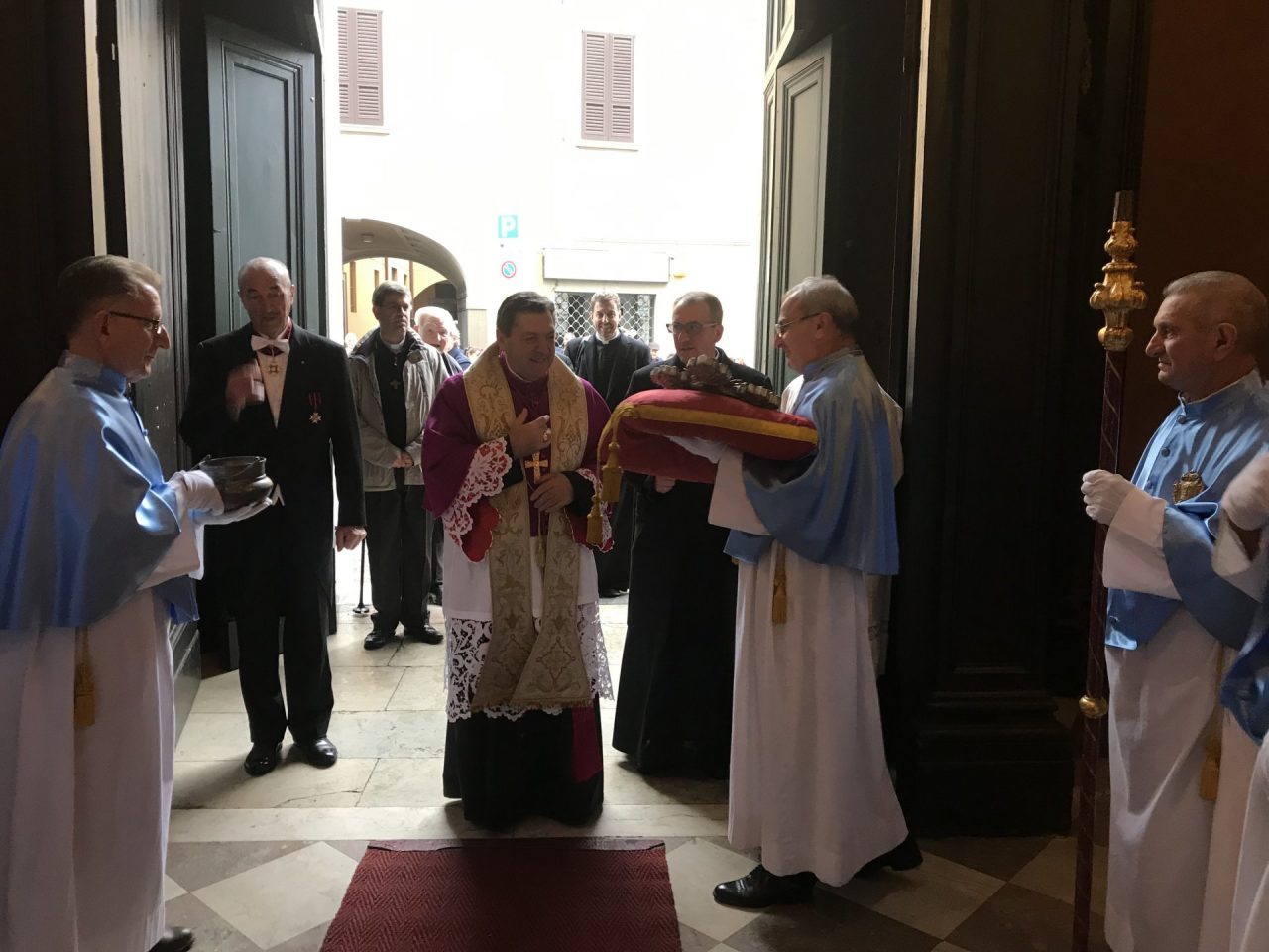 Una volta giunti alla chiesa di Santa Maria, il prevosto vi è entrato per una preghiera e per prepararsi alla Messa.