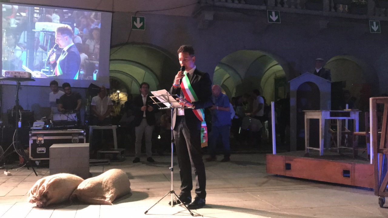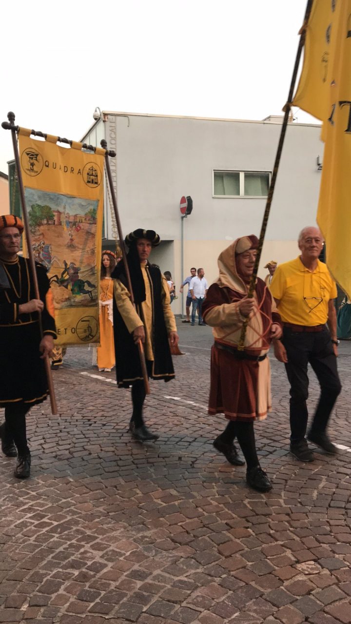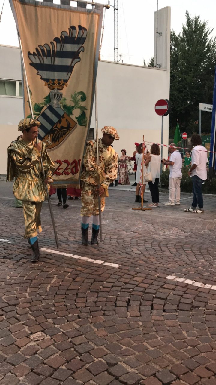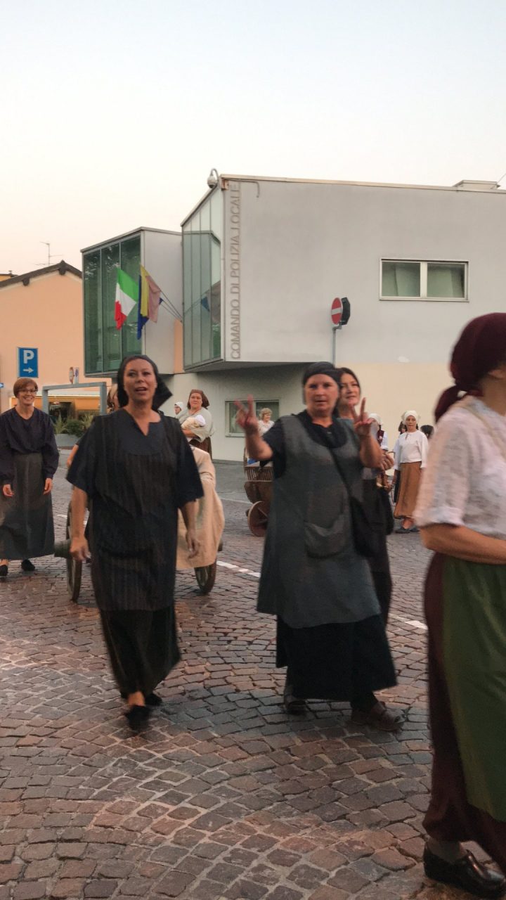 Prima dell’arrivo in piazza non è mancata la sfilata tra le vie del centro. Attori e figuranti hanno percorso la città. Il Corpo bandistico Pedersoli ha dato il via alla serata in piazza.