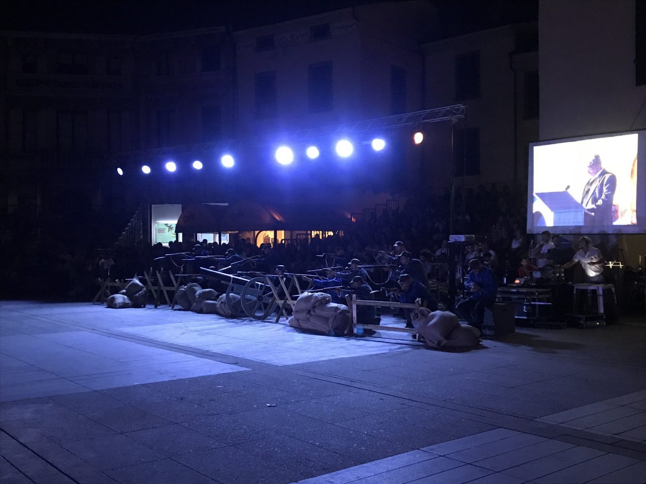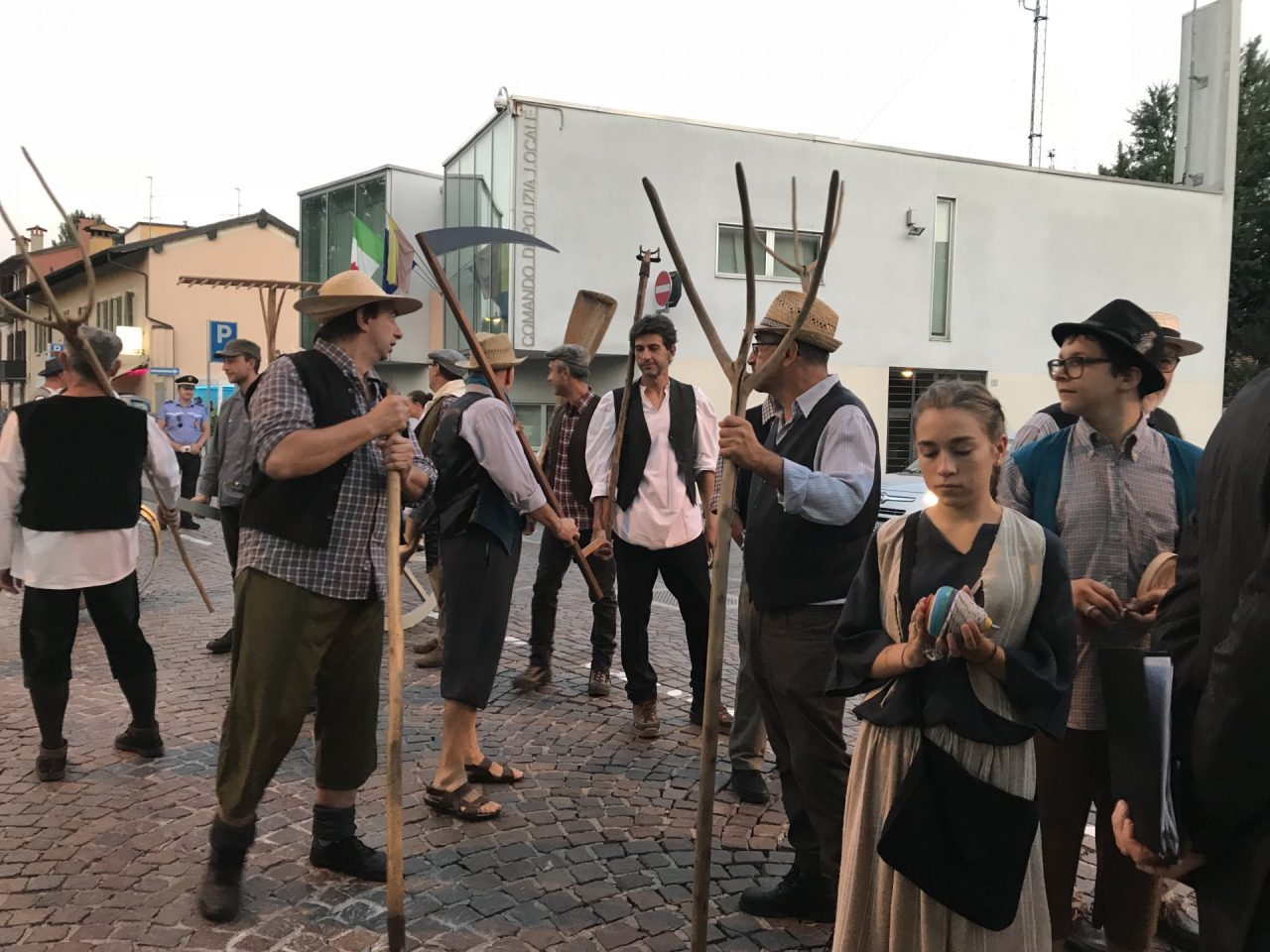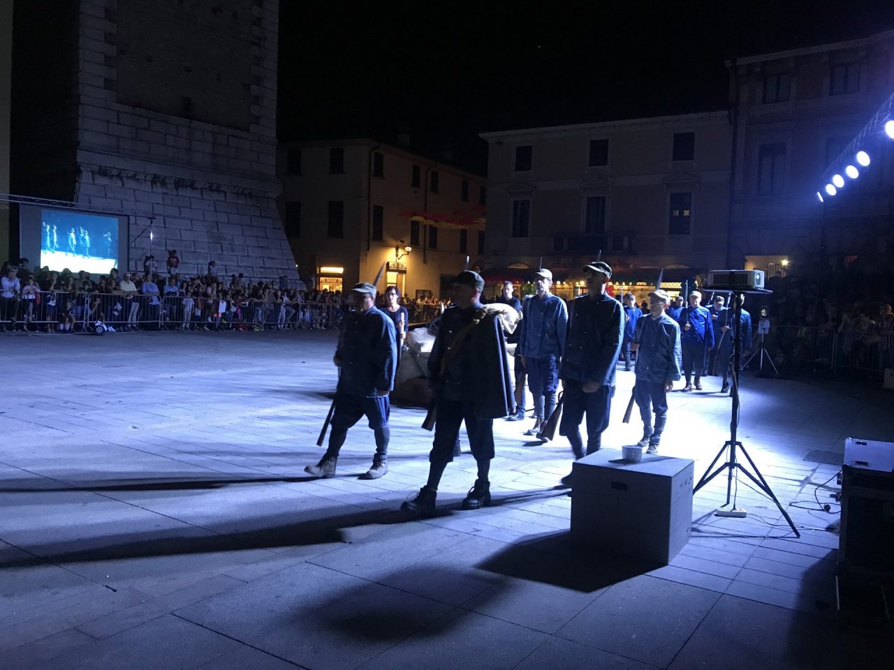 Pioggia di applausi per la rappresentazione “1915-18: Uragano”. Quest’anno, 100 anni dopo, il tema non poteva che essere quello della fine della Guerra. Meravigliosi in scena gli attori di 4Quadre Teatro in strada e Arhat Teatro, con la regia di Pierluigi Castelli.