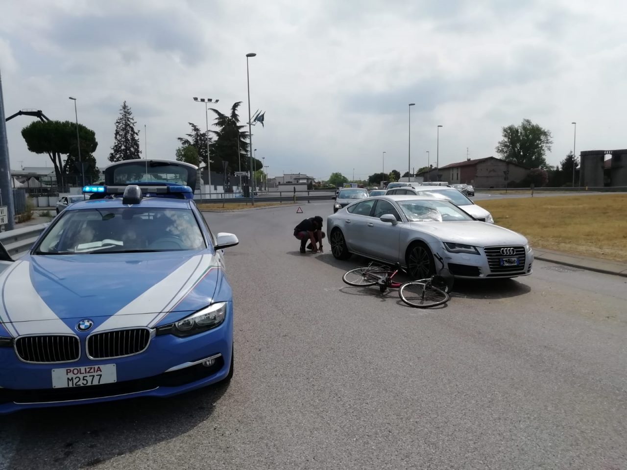 Ciclista investito alla rotonda tra via Montichiari e via Industriale a Ghedi. I soccorsi sono stati allertati intorno alle 10.30 e la circolazione prosegue a rilento.
