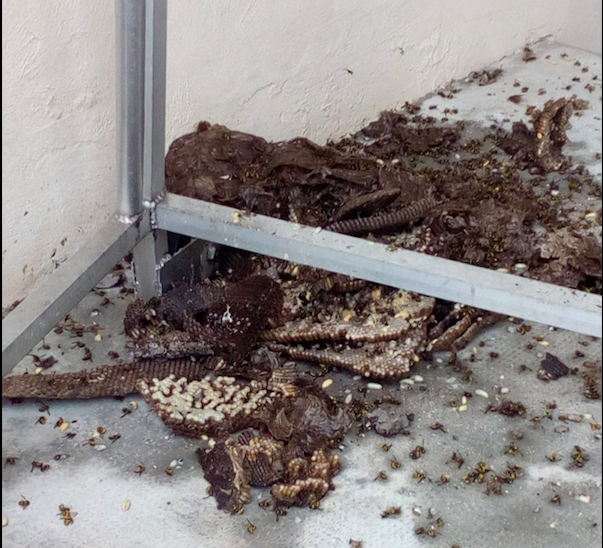 Alle 19 i lavori volgevano al termine con l’asportazione definitiva del grosso nido di insetti.
