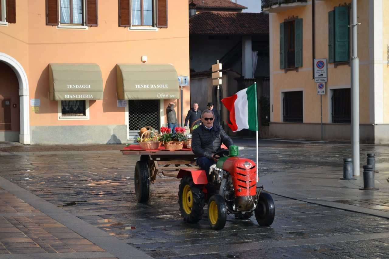 Alla presenza delle autorità, il parroco don Mario Metelli ha benedetto i trattori e le mietitrebbia presenti all’appello in piazza.