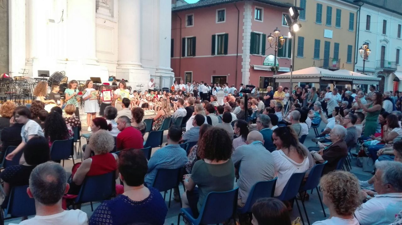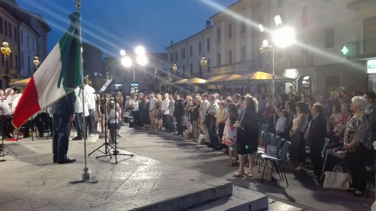 Il concerto della banda di Montichiari prende il via dall’occasione delle celebrazioni per la Festa della Repubblica. Una piazza Santa Maria pienissima per il concerto della banda.
