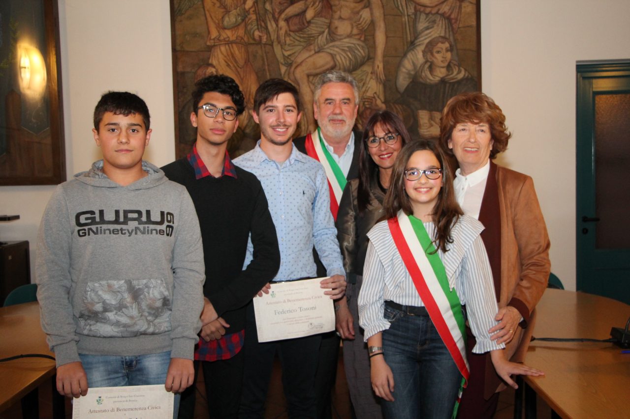 Ieri è stata anche l’occasione per consegnare l’Attestato di Benemerenza Civica ai sindaci del consiglio comunale dei ragazzi che si sono succeduti dal 2008 al 2019. A Tosoni Federico, Valentina Zambelli, Steven Gentili, Michele Schina e Noemi Pellini l’Amministrazione comunale e i tutor hanno riconosciuto il loro impegno e il loro senso civico che hanno esercitao a favore della comunità con generosità, altruismo e dedizione gratuita.