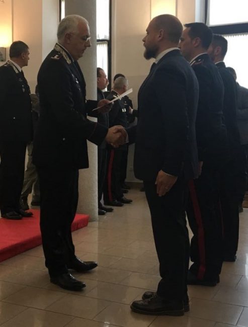 Il maresciallo ordinario Antonio D’aloisio, gli appuntati scelti Michele Filippini, Alessandro De Matteis e Alfio di Stefano, l’appuntato Gianluca Ciurlia e il carabiniere scelto Donato Catri hanno ricevuto l’encomio semplice per atti di eroismo durante il servizio.