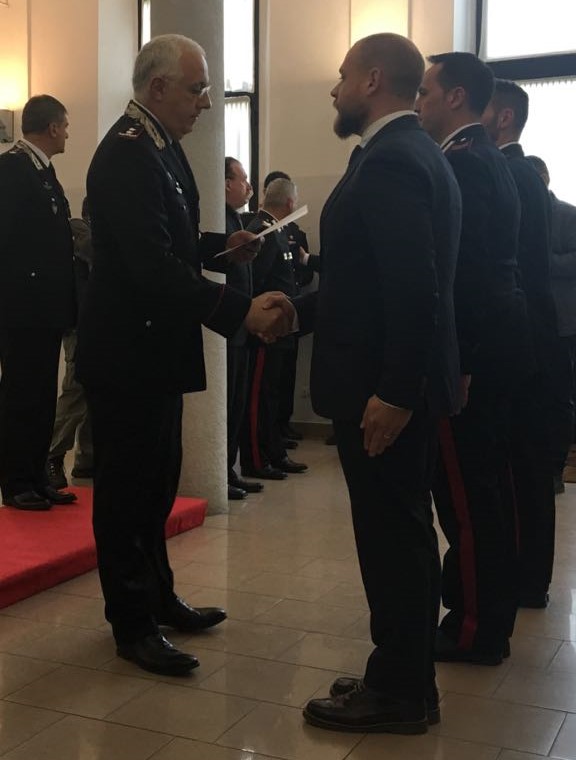 Il maresciallo ordinario Antonio D’aloisio, gli appuntati scelti Michele Filippini, Alessandro De Matteis e Alfio di Stefano, l’appuntato Gianluca Ciurlia e il carabiniere scelto Donato Catri hanno ricevuto l’encomio semplice per atti di eroismo durante il servizio.