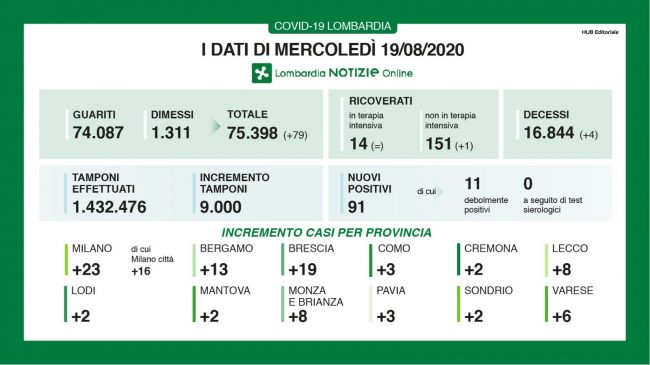 Coronavirus, nuova impennata: 19 contagiati a Brescia, 91 in Lombardia. Dopo alcuni giorni con numeri davvero piccoli (ieri e l’altroieri solo 4 casi nella nostra zona), tornano a preoccupare i dati relativi al Coronavirus.