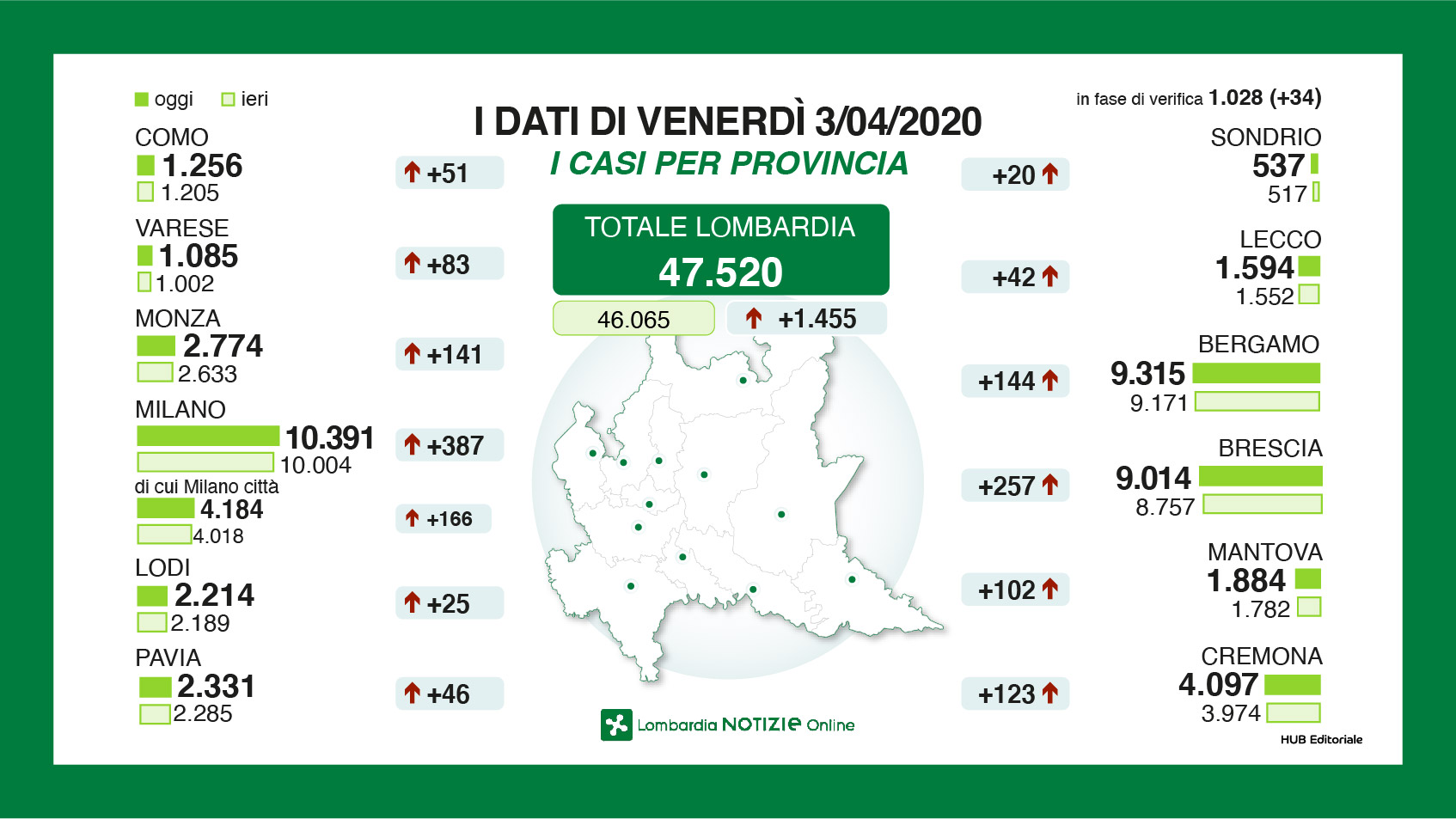 Il fronte del contagio ha subito un leggero incrementi, ma la situazione nel complesso sembra continuare a stabilizzarsi. Le persone contagiate sul territorio secondo i dati Ats di oggi, venerdì 3 aprile, sono 8.163 (sono 218 in più di ieri, mentre il giorno prima l’incremento era stato di 144 positivi). I deceduti sono saliti a 1.447 (+52 rispetto a ieri), ma anche le persone guarite dal coronavirus: sono 3.776 i bresciani che hanno vinto la loro battaglia contro il Covid-19, 167 in più di giovedì.