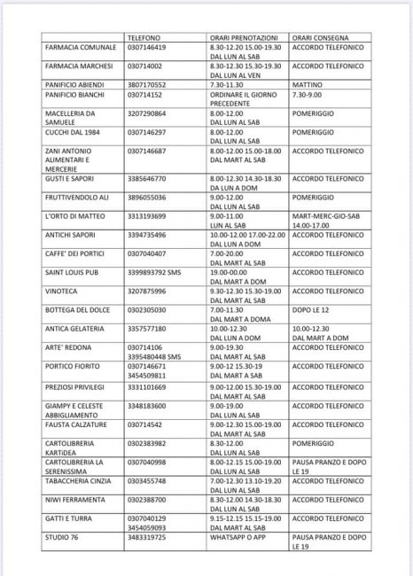 Non si ferma inoltre la rete solidale. A Castrezzato si sono subito attivati i commercianti. Con il supporto del Comune eseguiranno infatti il servizio di consegna domiciliare per gli over 65. Ecco l’elenco dei numeri utili.
