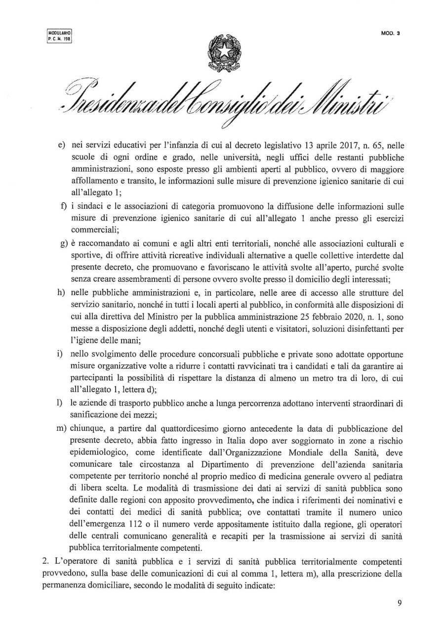 (Misure per il contrasto e il contenimento sull’intero territorio nazionale del diffondersi del virus COVID-19)