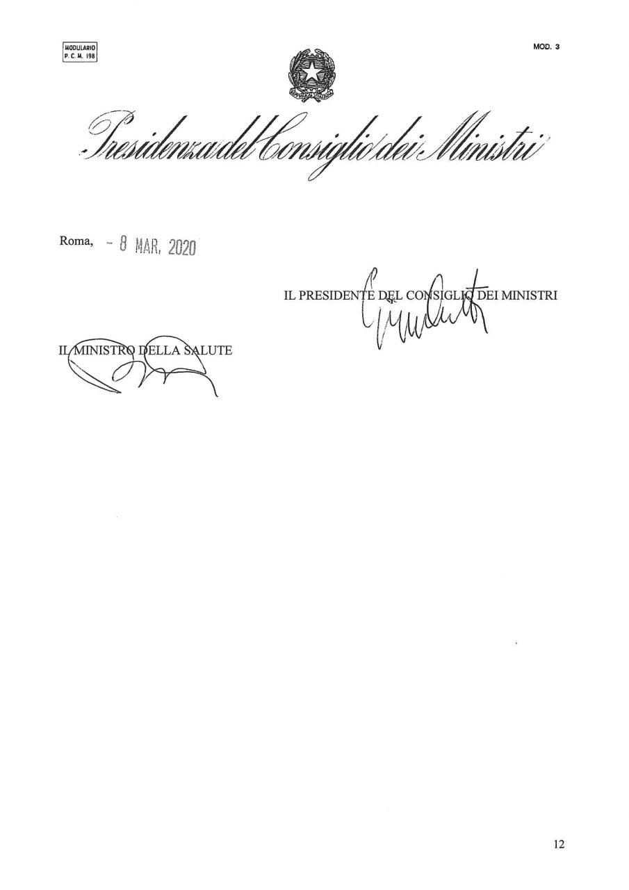Nella notte tra sabato 7 e domenica 8 marzo 2020 il presidente del Consiglio dei ministri ha approvato il documento: nel testo sono confluite le bozze circolate ieri, che avevano generato non poche perplessità e caos.