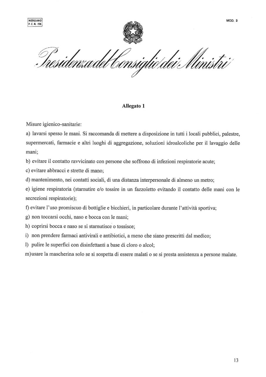 Ecco il documento integrale siglato nelle ore scorse: nord in quarantena per limitare l'insorgere di nuovi contagi.