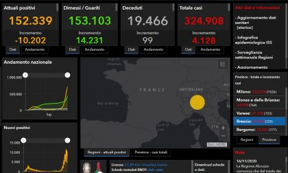 Coronavirus: 228 nuovi contagiati nel Bresciano, 4.128 in Lombardia e 27.354 in Italia. Sono i dati di oggi, lunedì 16 novembre, sul fronte Covid-19. Si dimezzano i contagiati nella nostra provincia e a livello regionale, e di conseguenza diminuiscono sensibilmente anche a livello nazionale. Anche a causa del basso numero di tamponi processato oggi: in Lombardia siamo a quota 18.037 contro i 38.702 di ieri, mentre in Italia 152.663 contro i 195.275 di ieri. Sempre alto, ma in calo, il numero delle vittime: 504 in Italia e 99 in Lombardia. Incoraggiante il numero dei guariti-dimessi nella nostra regione.