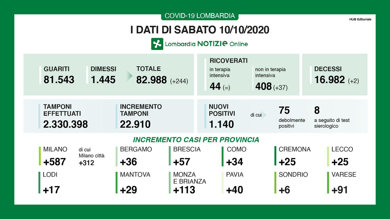 I dati di oggi in Lombardia