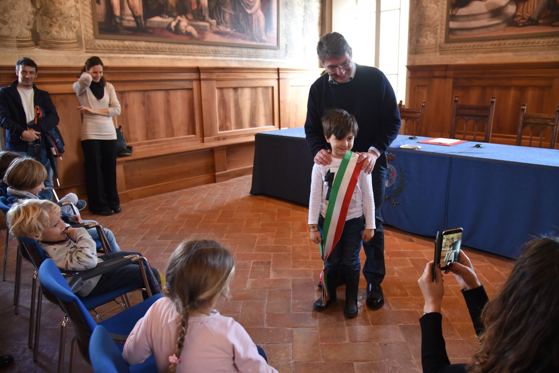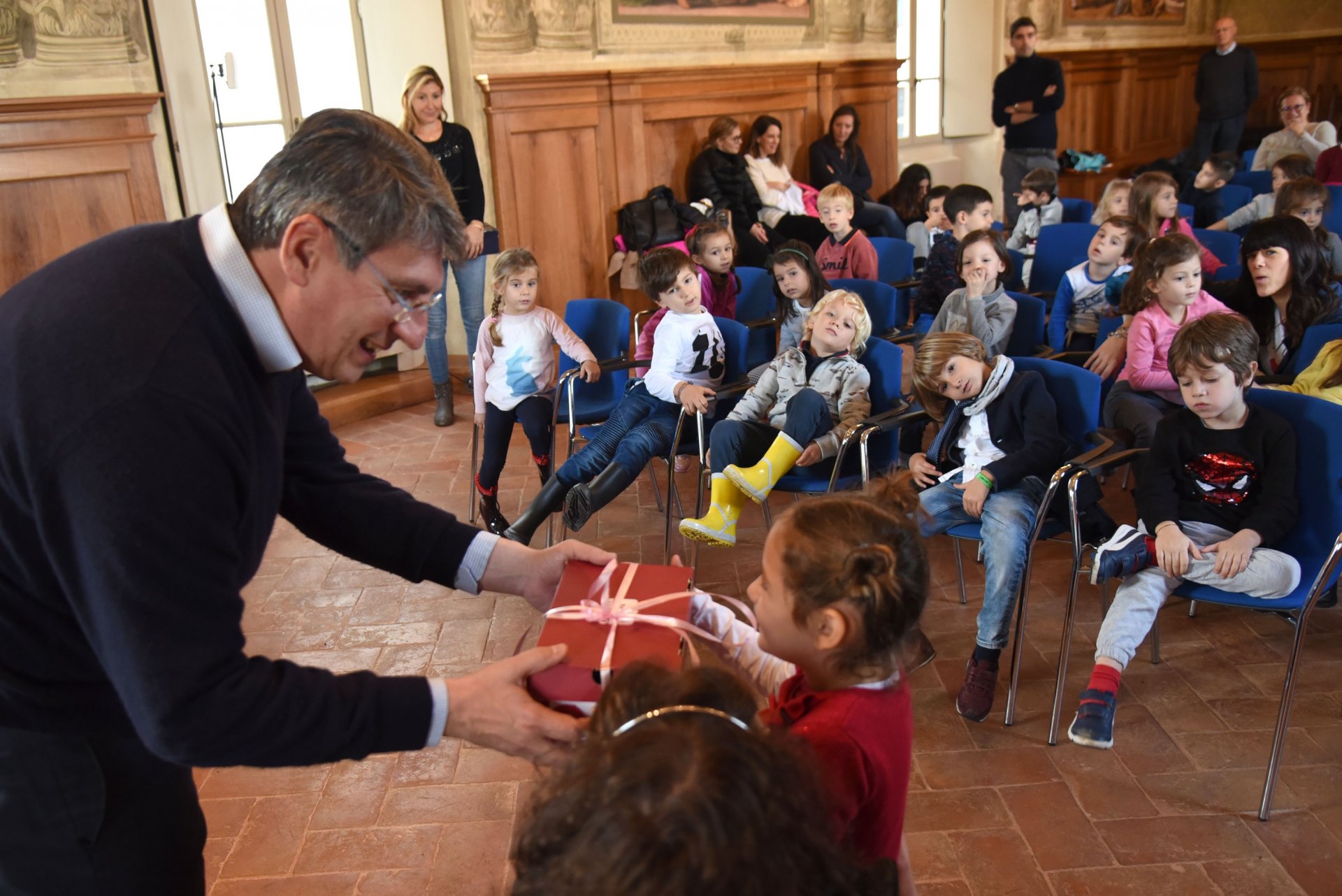 Il sindaco di Brescia, Emilio Del Bono, ha ricevuto a Palazzo Loggia la visita di bambine e bambini della scuola dell’infanzia Maria Ausiliatrice. Impegnati nel progetto didattico “Cosa faccio per te?”, mirato a conoscere i mestieri dei genitori, hanno iniziato il percorso dall’incontro con il primo cittadino che ha spiegato loro in cosa consiste il lavoro di gestione del bene pubblico, rispondendo a una lunga serie di domande che i giovanissimi, molto interessati e participi, hanno rivolto.