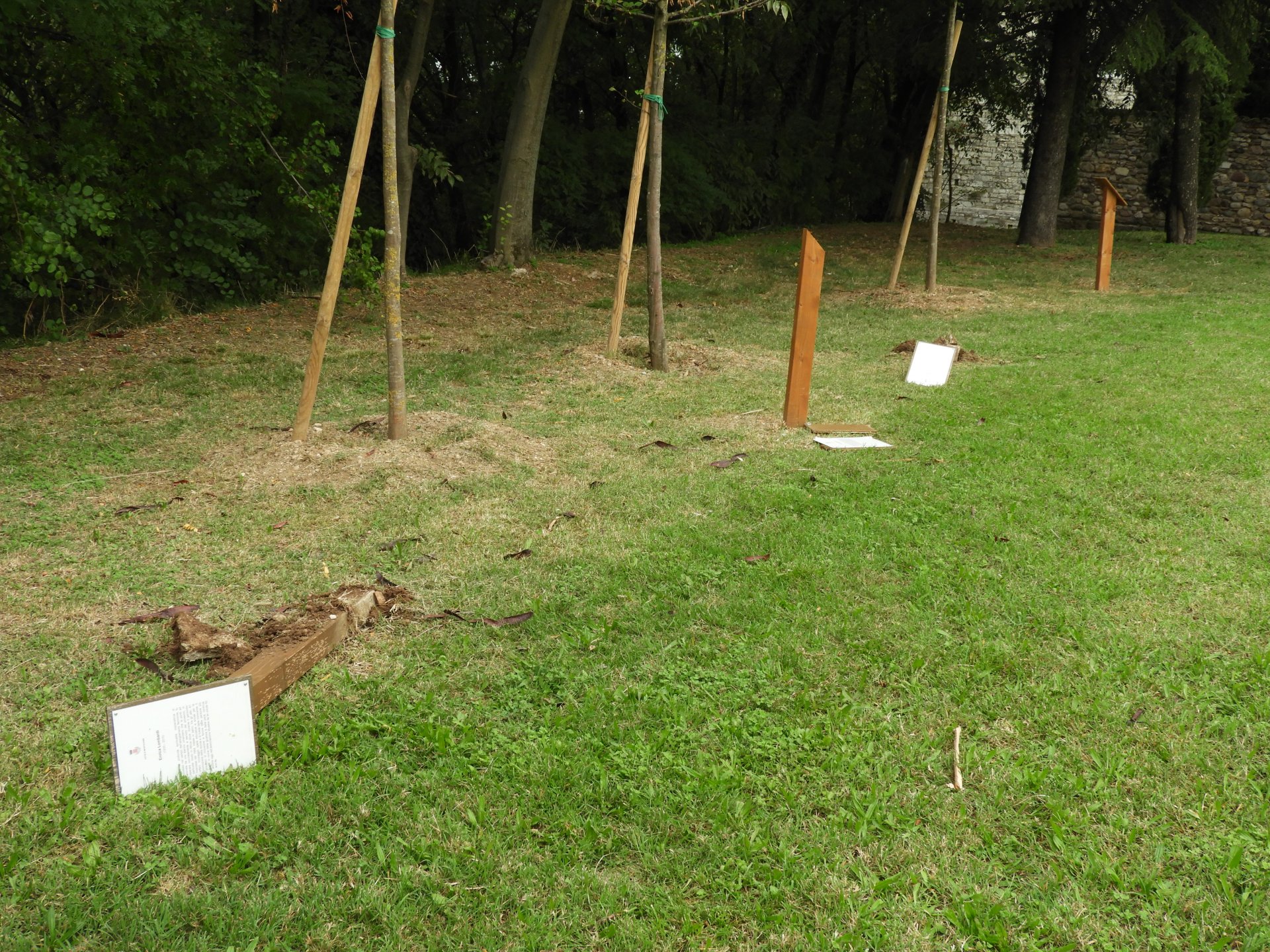 Almeno tre delle steli erette a ricordo degli uomini e delle donne, che hanno lasciato un segno concreto di solidarietà civica, sono state divelte e distrutte a calci.