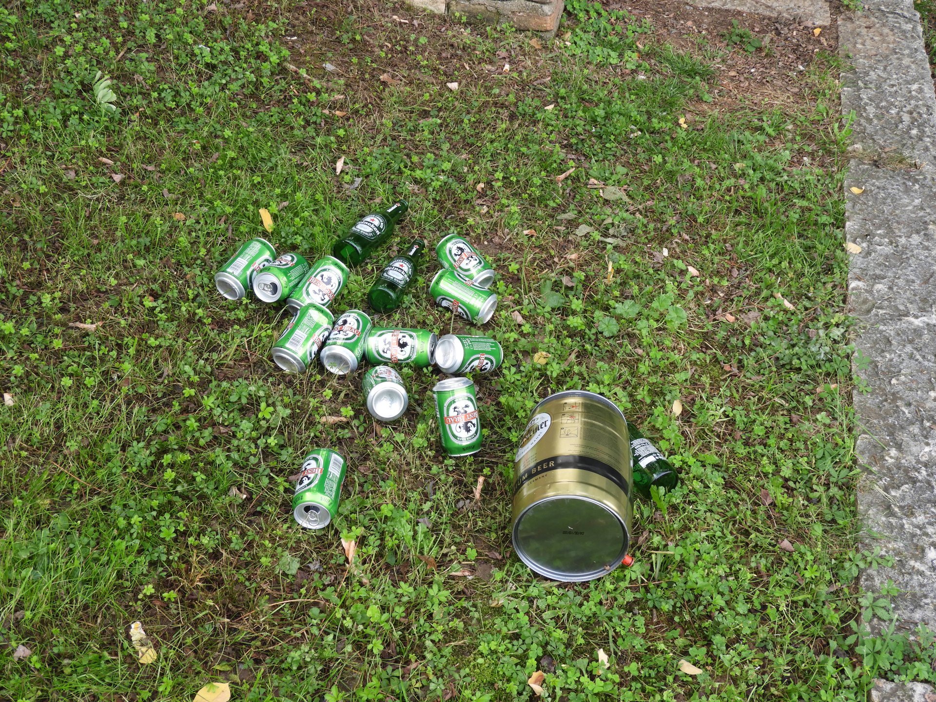 Lattine e bottiglie di superalcolici sparse per tutto il parco