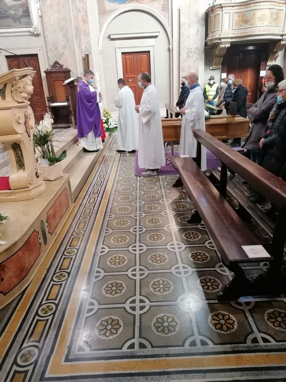 A causa delle misure restrittive anti-Covid, non è possibile creare assembramenti nella chiesa parrocchiale. Per questo la funzione, celebrata dal parroco don Vincenzo Arici, è trasmessa in streaming. In questo modo, anche non fisicamente, si può essere vicini ad Andrea e alla sua famiglia.