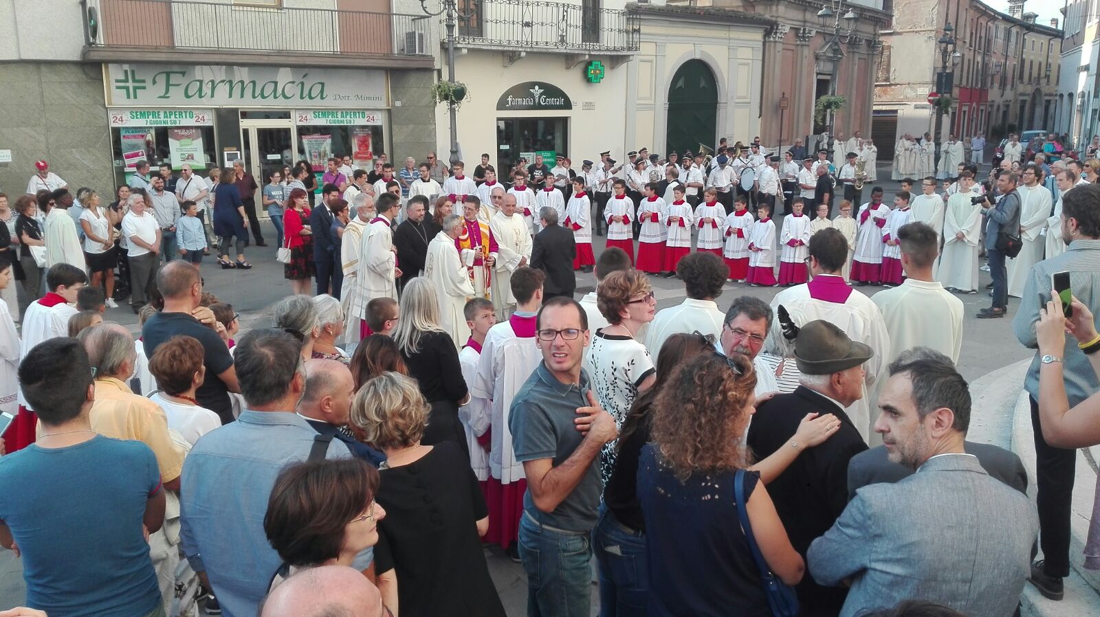 Preso per mano da una giovane mamma, Monsignor Cancarini si è portato davanti al monumento ai Caduti dove si sono tenuti i discorsi delle autorità civili e la benedizione civica. Anche la banda cittadina Carlo Inico ha salutato il nuovo don con omaggi musicali che hanno accompagnato tutto il suo tragitto.