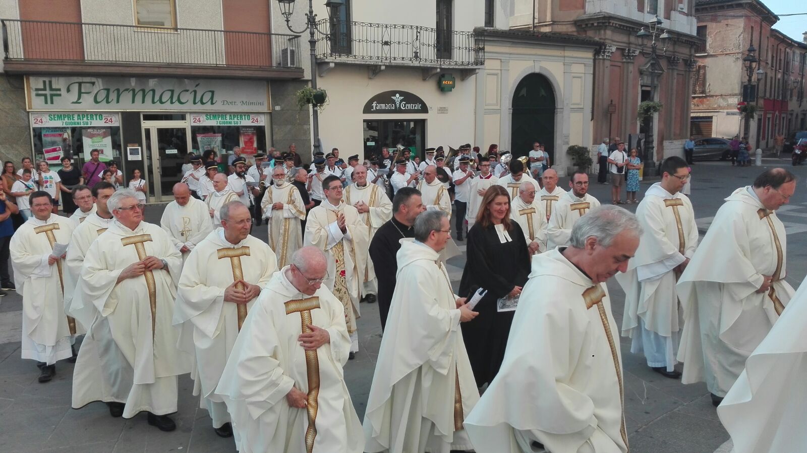 Arrivato in Piazza Santa Maria è stato salutato dal suono delle campane del duomo e della chiesa di San Pietro e si è vestito dai paramenti di pastore della comunità monteclarense.