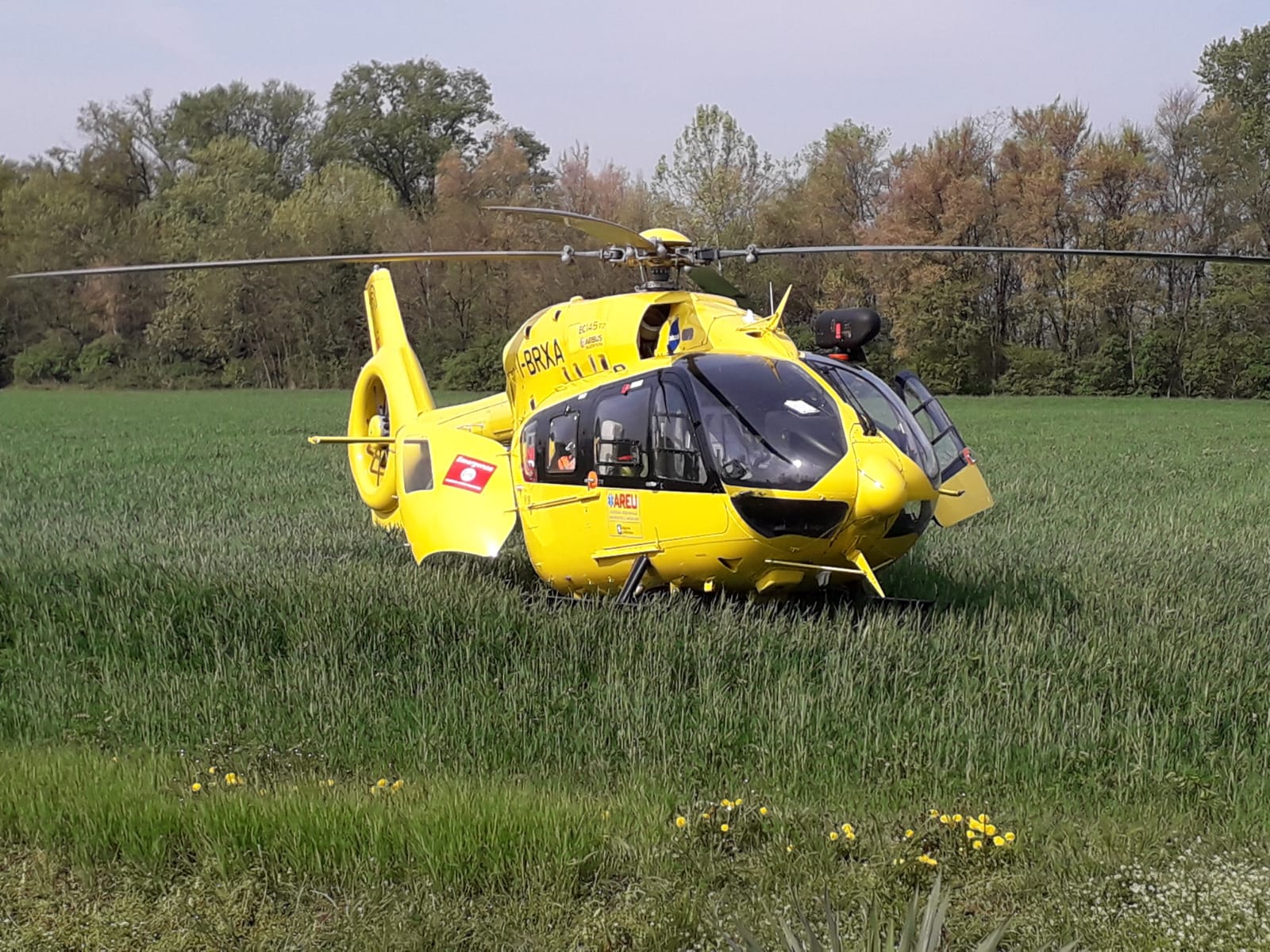Una spazzatrice si è ribaltata nei campi. Arrivato anche l'elisoccorso