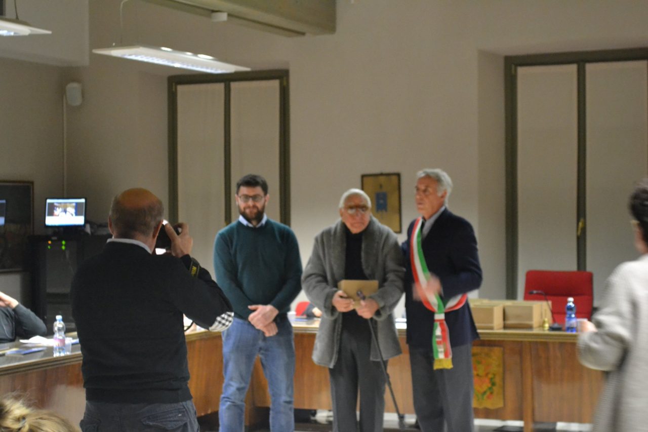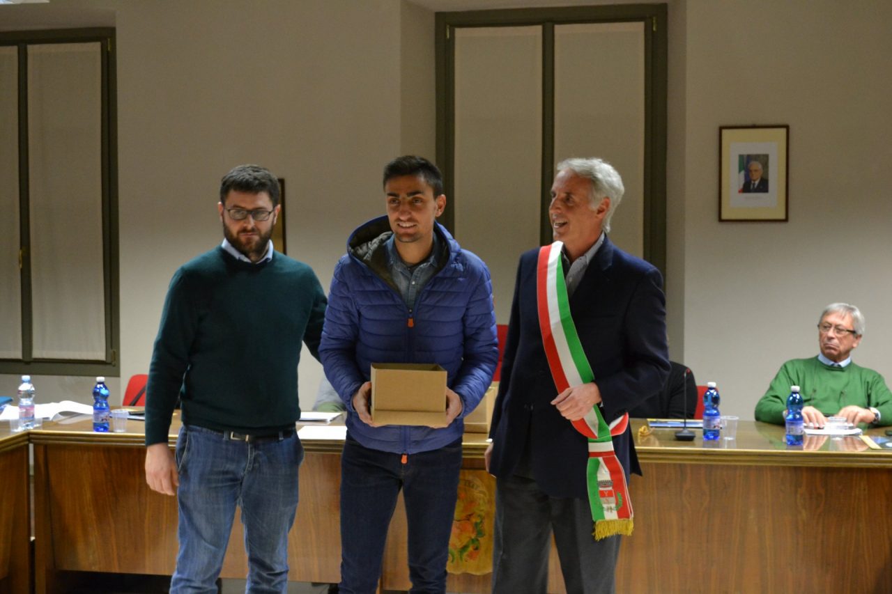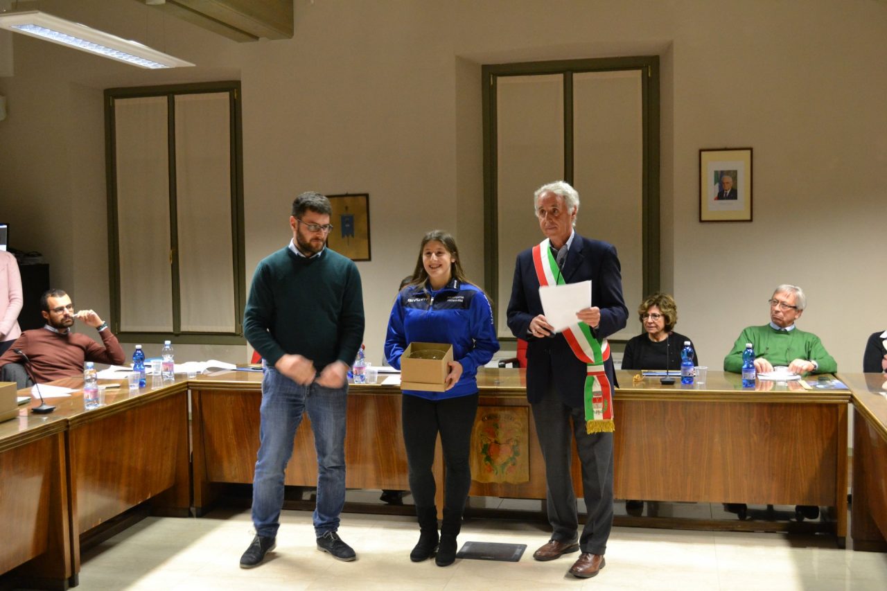 In apertura del Consiglio comunale il primo cittadino e il consigliere delegato allo Sport, Paolo Poiatti, hanno consegnato due premi alla carriera al marciatore clusanese Marcantonio Begni e al campione di vela Angelo Glisoni.