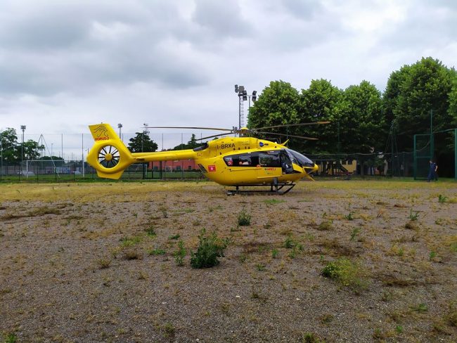 L’atterraggio di emergenza è avvenuto all’interno dello spiazzo del Centro Giovanile San Giovanni Bosco in via Martiri della Libertà, poco distante dallo studio medico nel quale l’uomo si trovava quando ha accusato il malore.