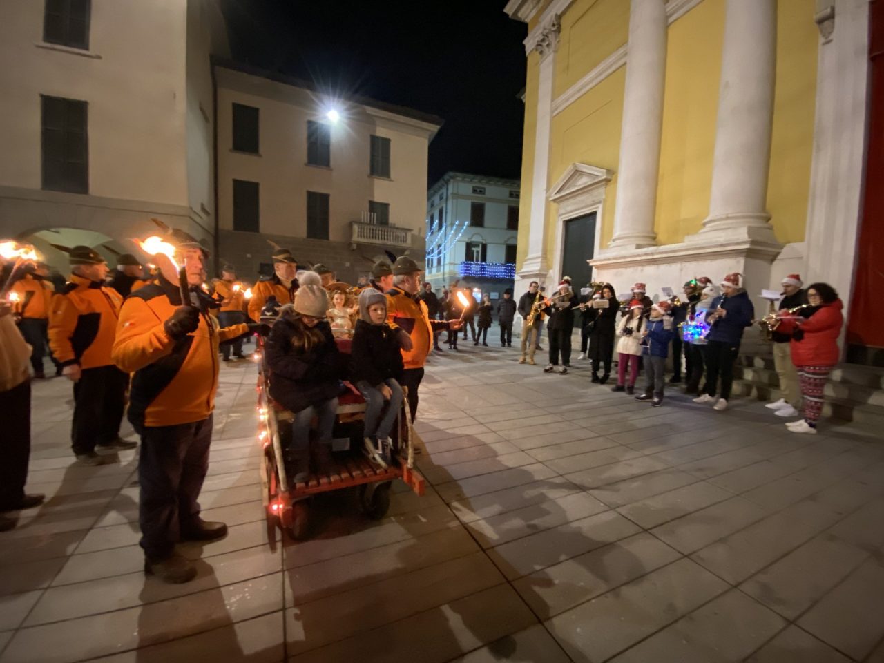 Un appuntamento al quale non si può proprio rinunciare. Anche quest’anno gli Alpini di Chiari hanno organizzato la fiaccolata con il bambin Gesù. Partendo dalla sede delle Penne nere in Villa, accompagnati dalla junior band Pedersoli e con i bimbi che si sono alternati sulla slitta, hanno percorso le vie della città allietando tutta la comunità. All’arrivo in viale Mellini, alla capanna, hanno posizionato il Bambin Gesù nella sua culla. Immancabili gli auguri di rito da parte del capogruppo Alfredo Facchetti. Buone feste a tutti!