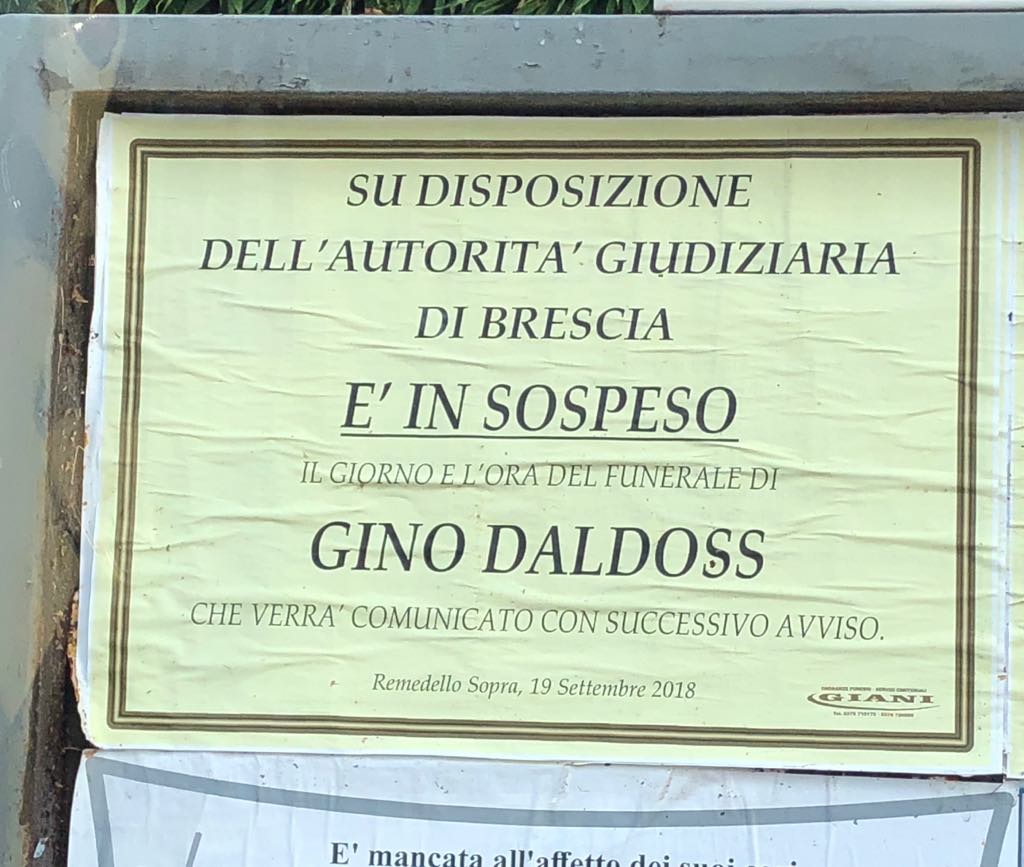 Originario di Remedello, tra l’elenco delle persone venute a mancare a seguito dell’epidemia di legionella, c’è anche Gino Daldoss. Ma l’autorità giudiziaria di Brescia vuole vederci chiaro e ha sospeso i funerali del pensionato, di 90anni, ricoverato all’ospedale di Asola e deceduto mercoledì.