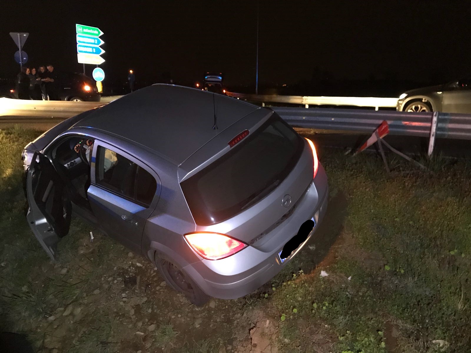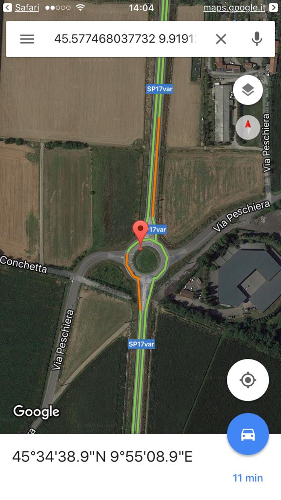 Come si vede il guard-rail è stato divelto dall’auto. In alcuni punti della rotonda è però completamente assente, e la rotonda è “protetta” solo da segnaletica stradale mobile.