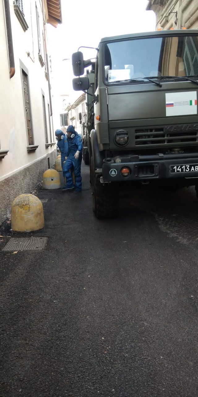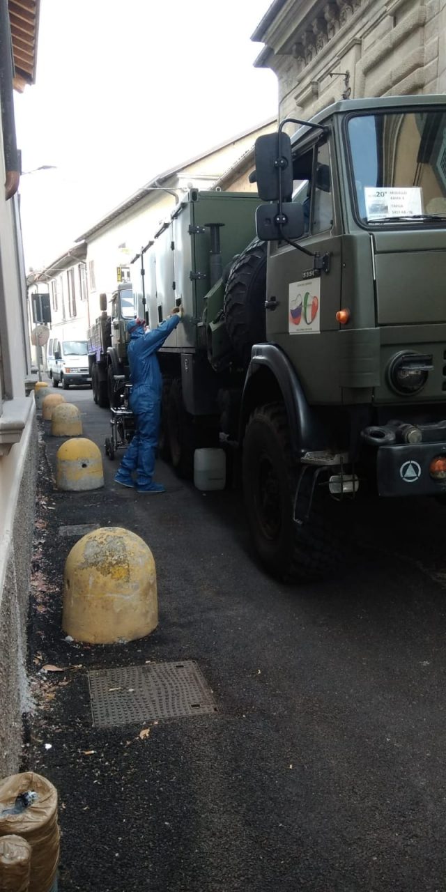 L’esercito italiano e quello russo sono arrivati anche a Palazzolo. Dopo Chiari, Urago, Castrezzato, Rovato e numerossissimi Comuni della Bassa, ora hanno raggiunto la zona del Sebino. Questa mattina infatti, dopo il sopralluogo di ieri, hanno iniziato le operazioni di pulizia e sanificazione, a seguito dell’epidemia di Coronavirus, nei locali della Casa di riposo don Cremona situata a Mura, storico quartiere nel cuore della città.