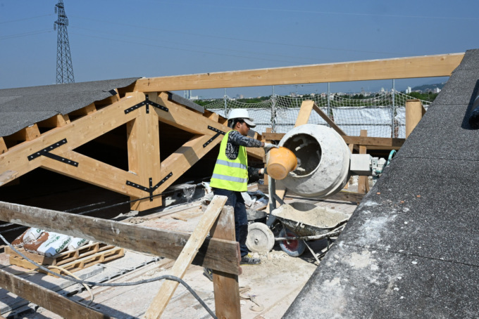 Nel secondo lotto, invece, si sta ultimando la struttura in cemento armato con la realizzazione della copertura inclinata. Successivamente, verranno eretti i muri perimetrali e saranno posizionate le guaine sul tetto e le tramezzature interne.