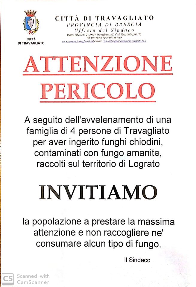 Da domenica sera una famiglia di Travagliato è ricoverata in ospedale dopo aver mangiato funghi chiodini: tra questi si trovava anche una velenosa Amanita phalloides. Le persone coinvolte hanno mostrato immediatamente i sintomi più comuni dell’avvelenamento: nausea, vomito, diarrea e ipotensione. Ricoverati agli Spedali Civili di Brescia, le loro condizioni si sono dimostrate subito serie.