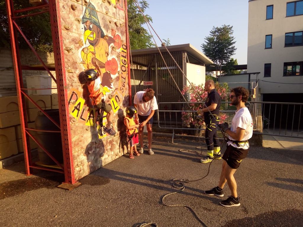 La Croce Rossa ha mostrato momenti di primo intervento mentre i vigili hanno posizionato una piccola parete per le arrampicate dei bambini piccoli.