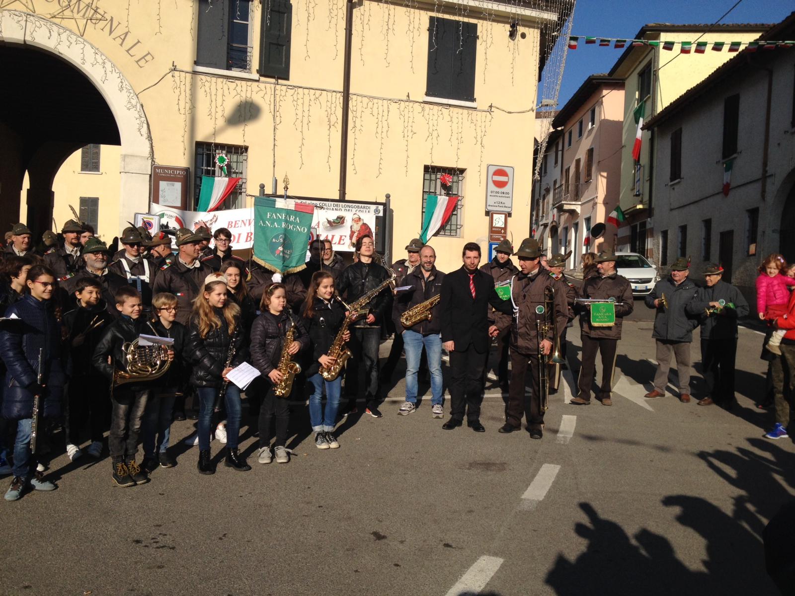A celebrare questo importante  traguardo a fianco del presidente della sezione locale, Davide Andreoletti, è presente la sezione Alpini di Brescia. Il corteo è stato accompagnato dalla fanfara degli Alpini di Rogno.