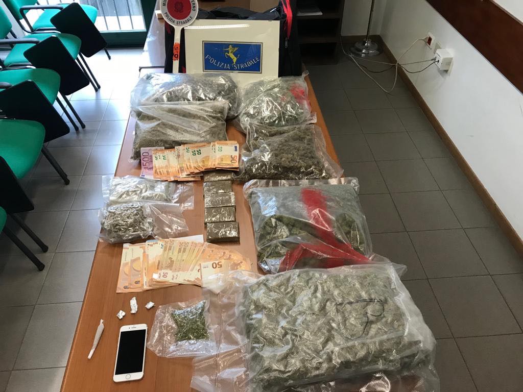 Alla luce dei fatti gli agenti della Stradale hanno effettuato una perquisizione presso l’abitazione del soggetto, all’interno della quale sono state trovate sei buste contenenti sostanza stupefacente per circa tre chili, materiale per il confezionamento delle dosi e circa 3000 euro in contanti.