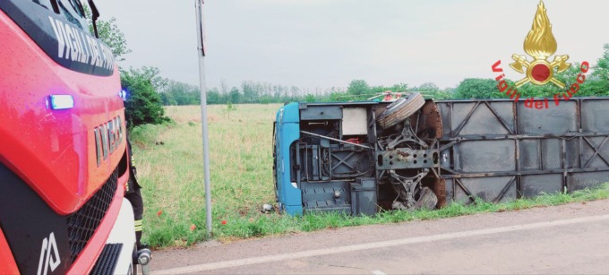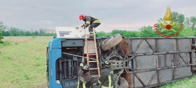 Erano circa le 6.50 di oggi (lunedì 8 maggio 2023) quando sulla strada interna tra la campagna di Dello è quella di Azzano Mella, un pullman di linea, con a bordo numerosi studenti e lavoratori diretti in città, è finito fuori strada. Il ribaltamento è avvenuto poco dopo una curva, nell’arco di pochi istanti il mezzo si è ritrovato riverso sul lato destro nel terreno adiacente la sede stradale.