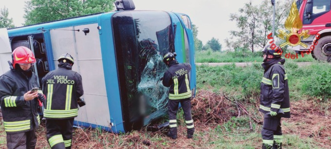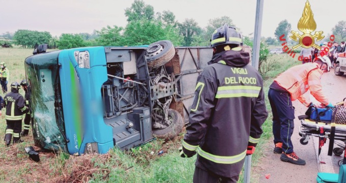 La chiamata al 112 è partita alle 6.52. Data la portata dell’evento, per il numero di persone coinvolte, è stata attivata la procedura di maxi emergenza. La centrale operativa ha inviato in via Caduti del lavoro, la Polizia Stradale, quella Locale per garantire la sicurezza della scena, la viabilità e la corretta ricostruzione dei fatti, diverse squadre dei vigili del fuoco in arrivo da Brescia, Chiari, Verolanuova. Ambulanze e il mezzo di soccorso avanzato con a bordo medico e infermieri partito dagli Spedali Civili di Brescia. Ogni persona coinvolta nel sinistro è stata visitata sul posto. L’evento poteva avere esisti ben peggiori ma fortunatamente solo 12 persone sono state trasferite negli ospedali del territorio (Spedali Civili, Poliambulanza, Manerbio e Città di Brescia) con 11 codici verdi e 1 codice giallo per una passeggera di 62 anni. Le condizioni non hanno destato particolari preoccupazioni, si è trattato prevalentemente di lcontusioni. Anche il ”ragazzino-soccorritore” è stato affidato alle cure mediche per una contusione al ginocchio che si è procurato mentre prestava aiuto.