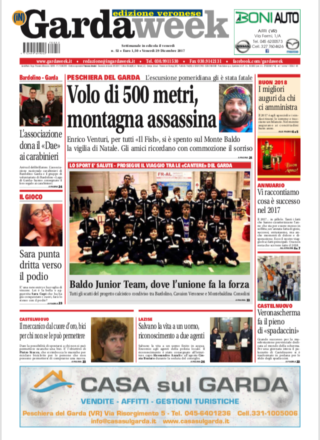 Peschiera: Volo di 500 metri, montagna assassina. Enrico Venturi, per tutti «Il Fish», si è spento sul Monte Baldo