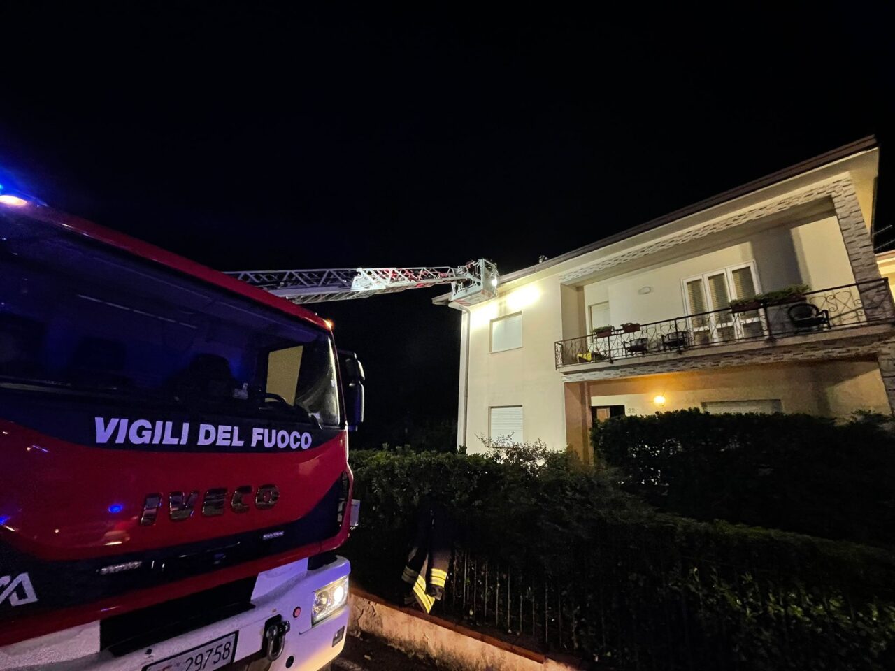 Grandine e vento, si sono abbattuti verso le 23 sul paese danneggiando la copertura di una abitazione di due piani.