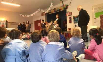I bambini infatti hanno lasciato le proprie aule vuote e si sono adunati nell’atrio dove ad attenderli c’erano due nonne d’eccezione: Santa e Maria, ospiti della casa di riposo della medesima Fondazione a cui appartiene l’asilo.