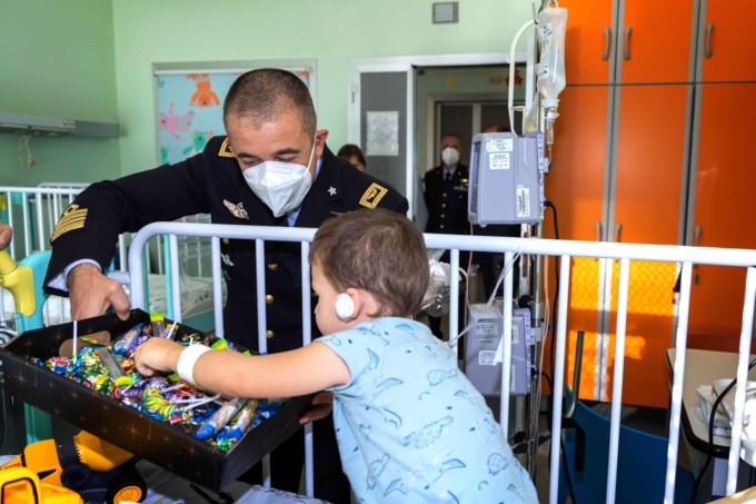 “Nel corso dell’incontro – hanno spiegato – si è avuto modo di constatare l’eccezionale carica empatica, il coraggio e la tenacia di tutti i piccoli degenti nell’affrontare la malattia, affiancati dall’amore delle famiglie e dalla straordinaria dedizione del personale sanitario. Con piccoli regali, simboli di vita del Reparto, stimolanti prospettive, la delegazione del 6° Stormo ha portato in corsia un gesto di attenzione: una simbolica carezza sul cuore dei piccoli, con la speranza di aver trasmesso gioia e regalato un sorriso”.